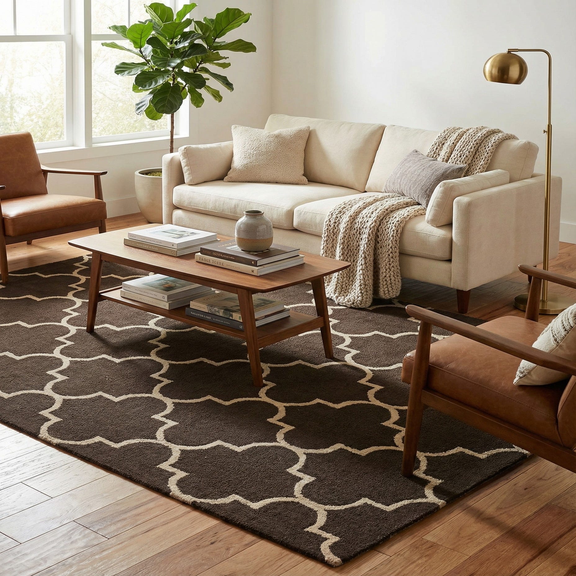 Primary color is Dark Brown. Colors in this rug include: Dark Brown, Ivory.