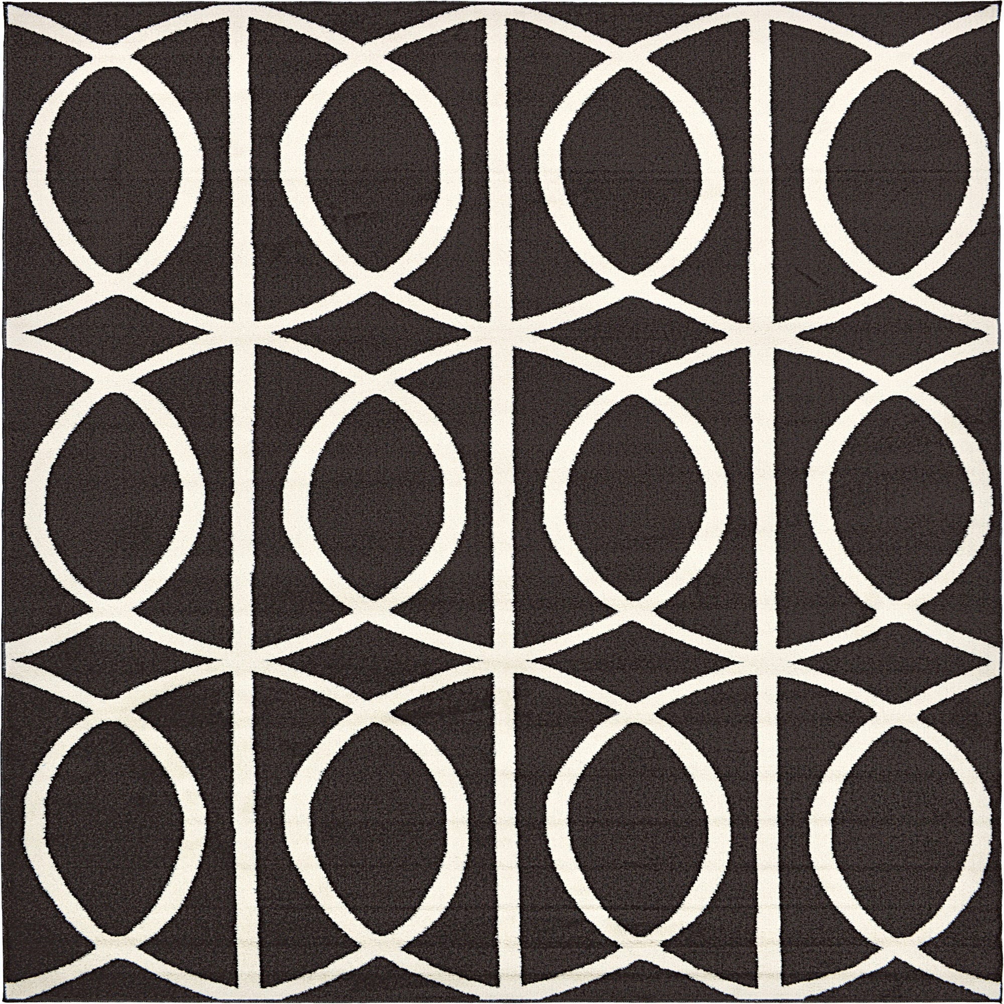 Primary color is Dark Brown. Colors in this rug include: Dark Brown, Ivory.
