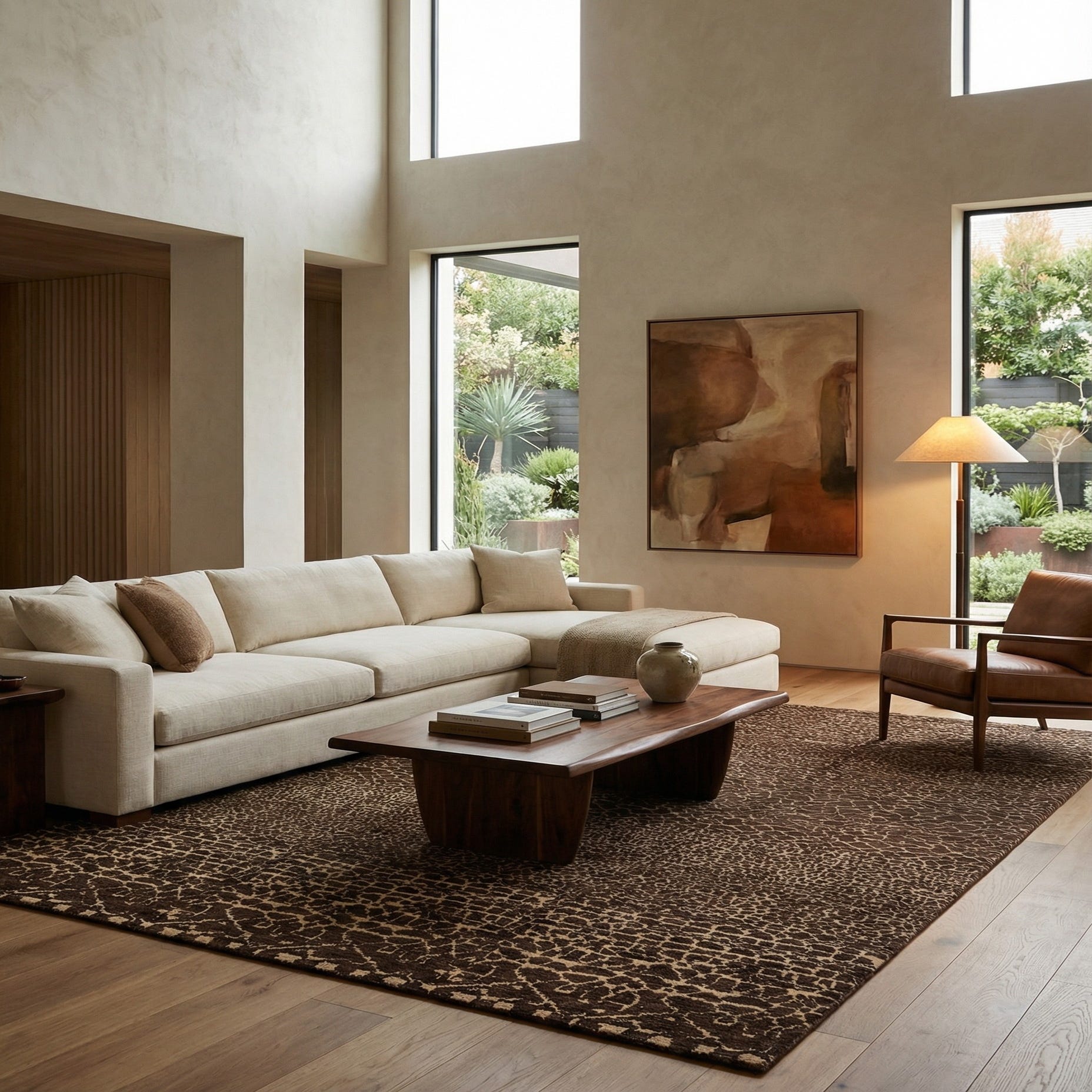 Primary color is Dark Brown. Colors in this rug include: Dark Brown, Ivory.