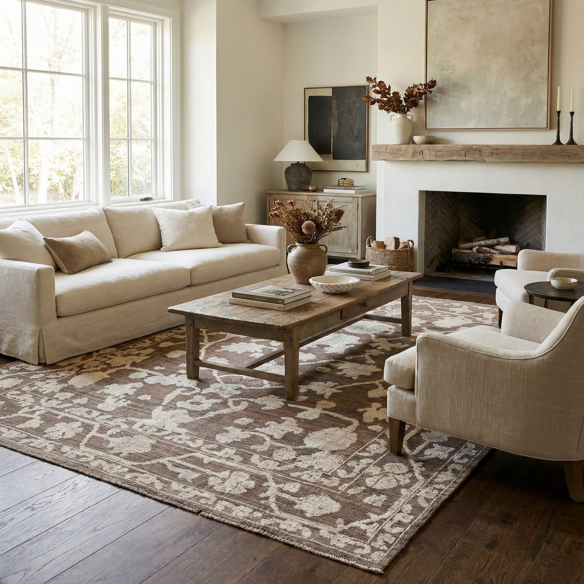 Primary color is Dark Brown. Colors in this rug include: Dark Brown, Ivory.