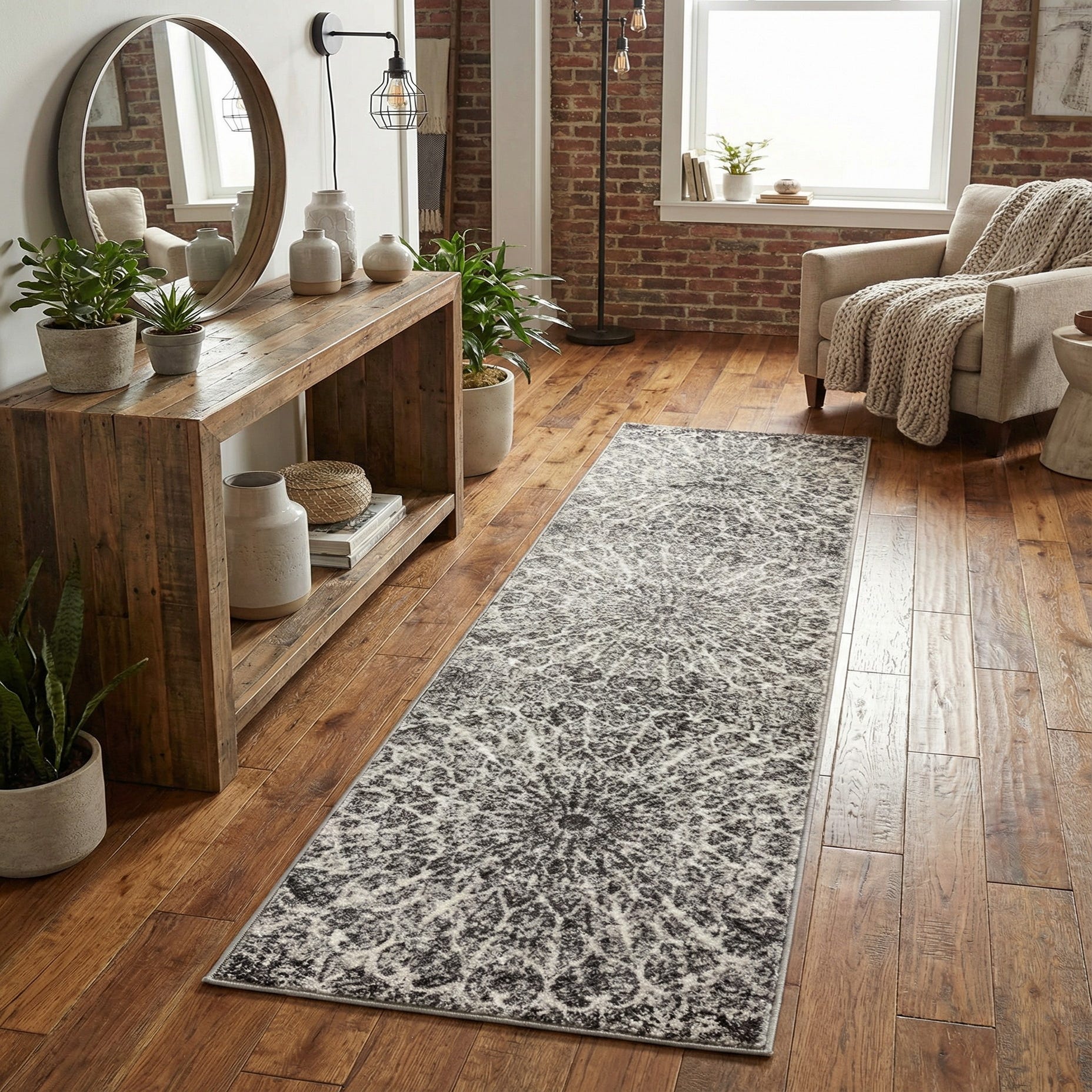 Primary color is Dark Gray. Colors in this rug include: Dark Gray, Gray, Ivory.