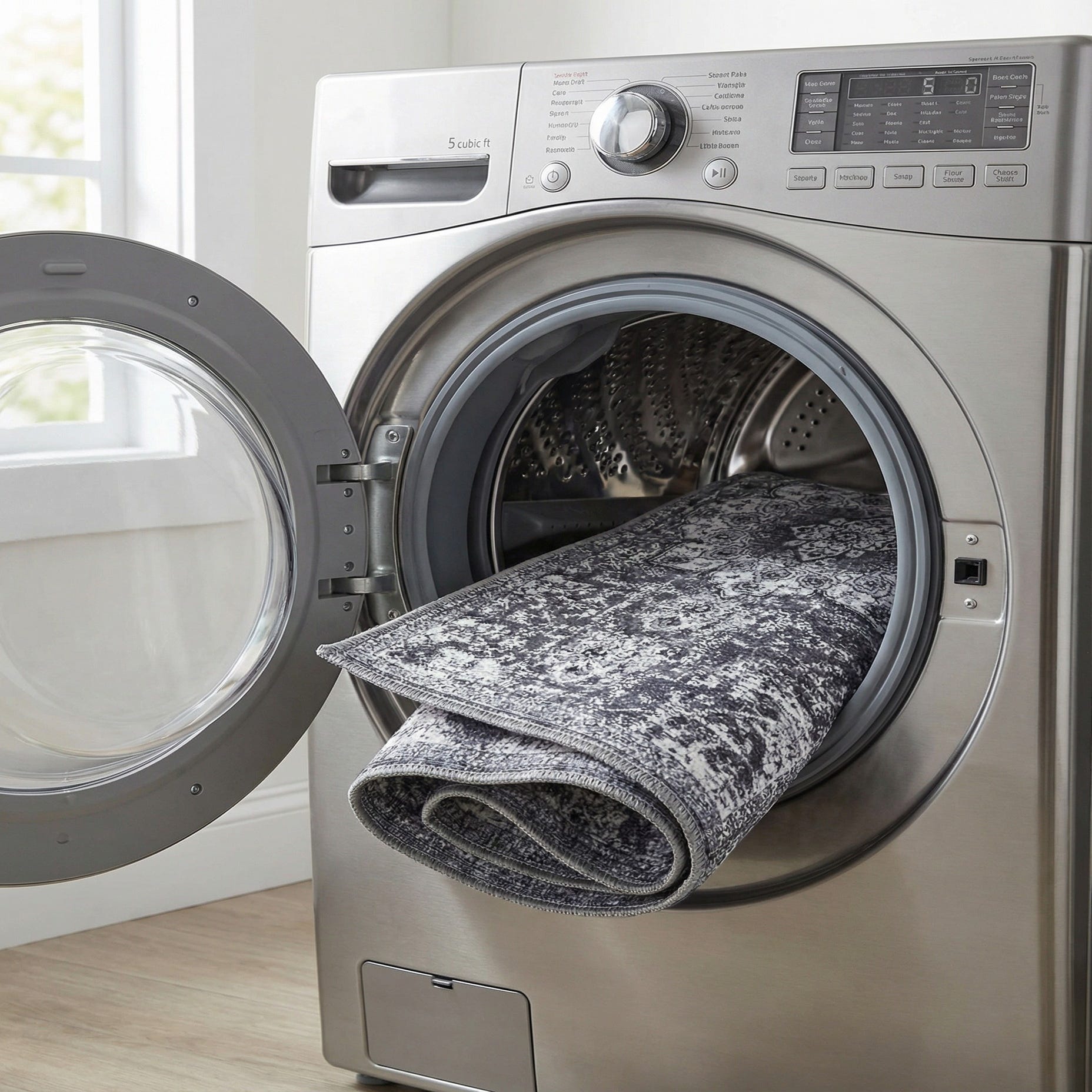 Primary color is Dark Gray. Colors in this rug include: Dark Gray, Black, Ivory.