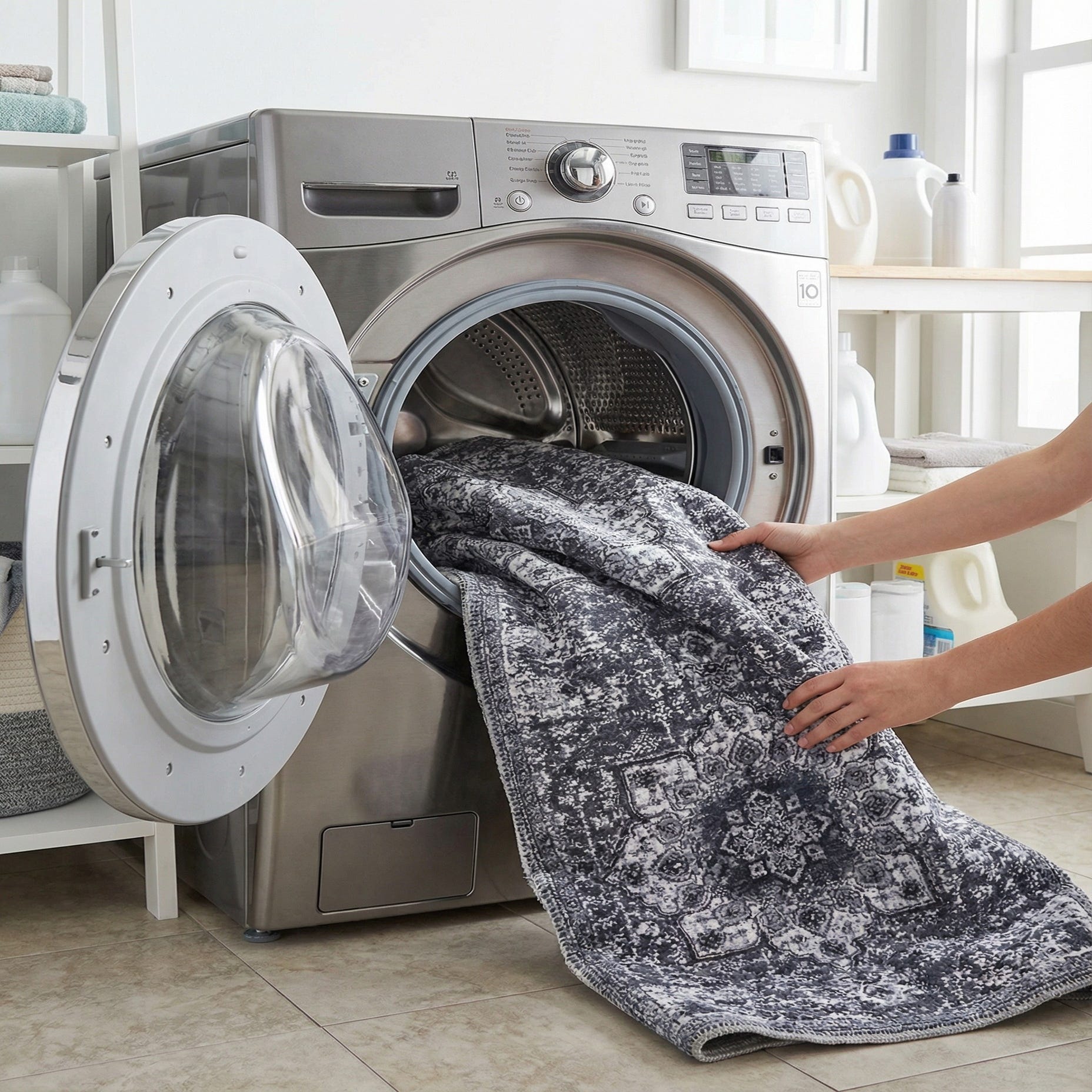 Primary color is Dark Gray. Colors in this rug include: Dark Gray, Black, Ivory.