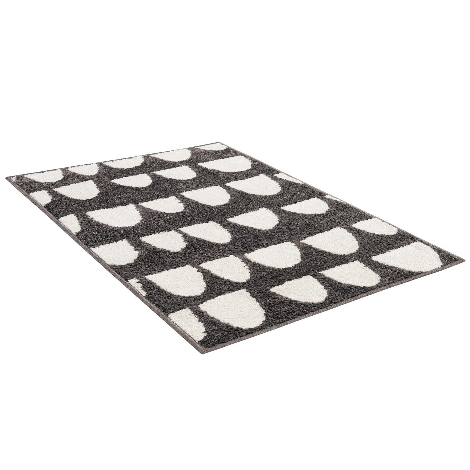 Primary color is Dark Gray. Colors in this rug include: Dark Gray, Ivory.