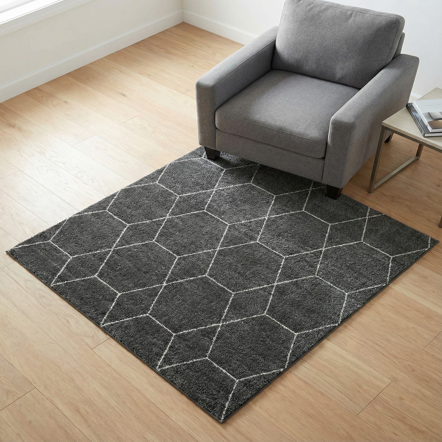 Primary color is Dark Gray. Colors in this rug include: Dark Gray, Ivory.