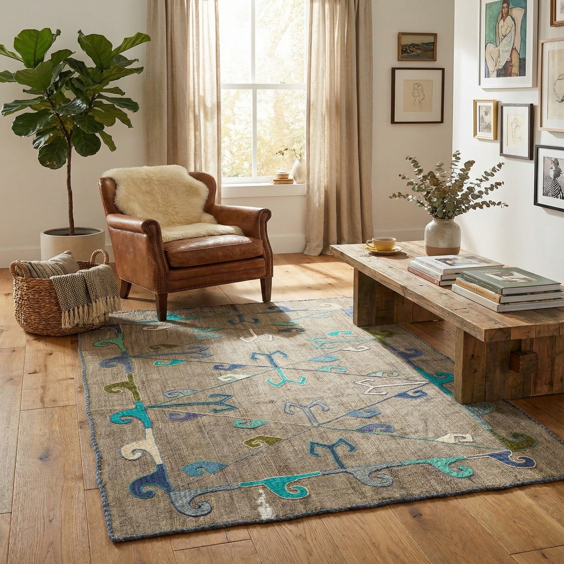 3' 8 x 4' 9 Hand Woven Kilim Suzani Wool Rug