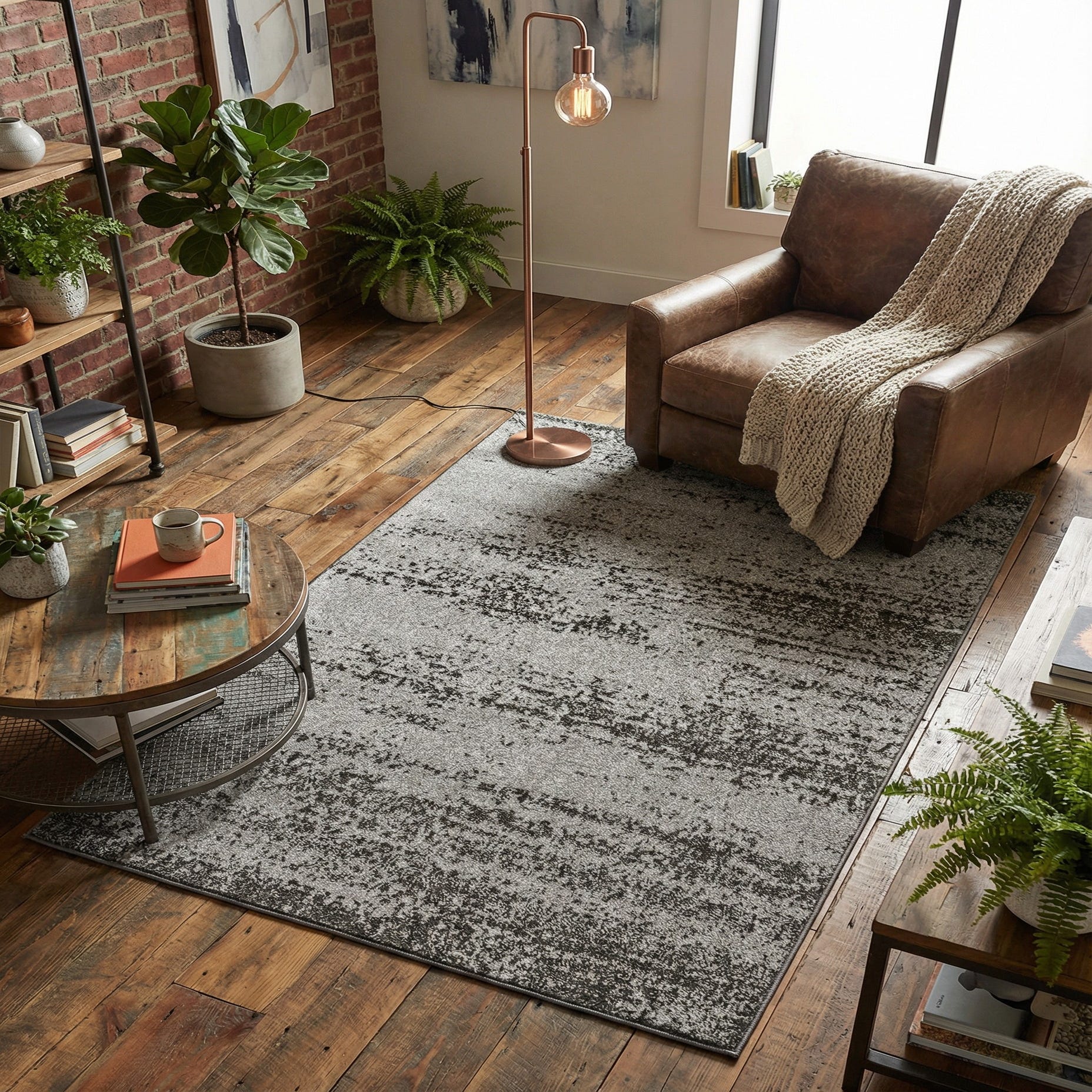Primary color is Dark Gray. Colors in this rug include: Dark Gray, Black, Gray.