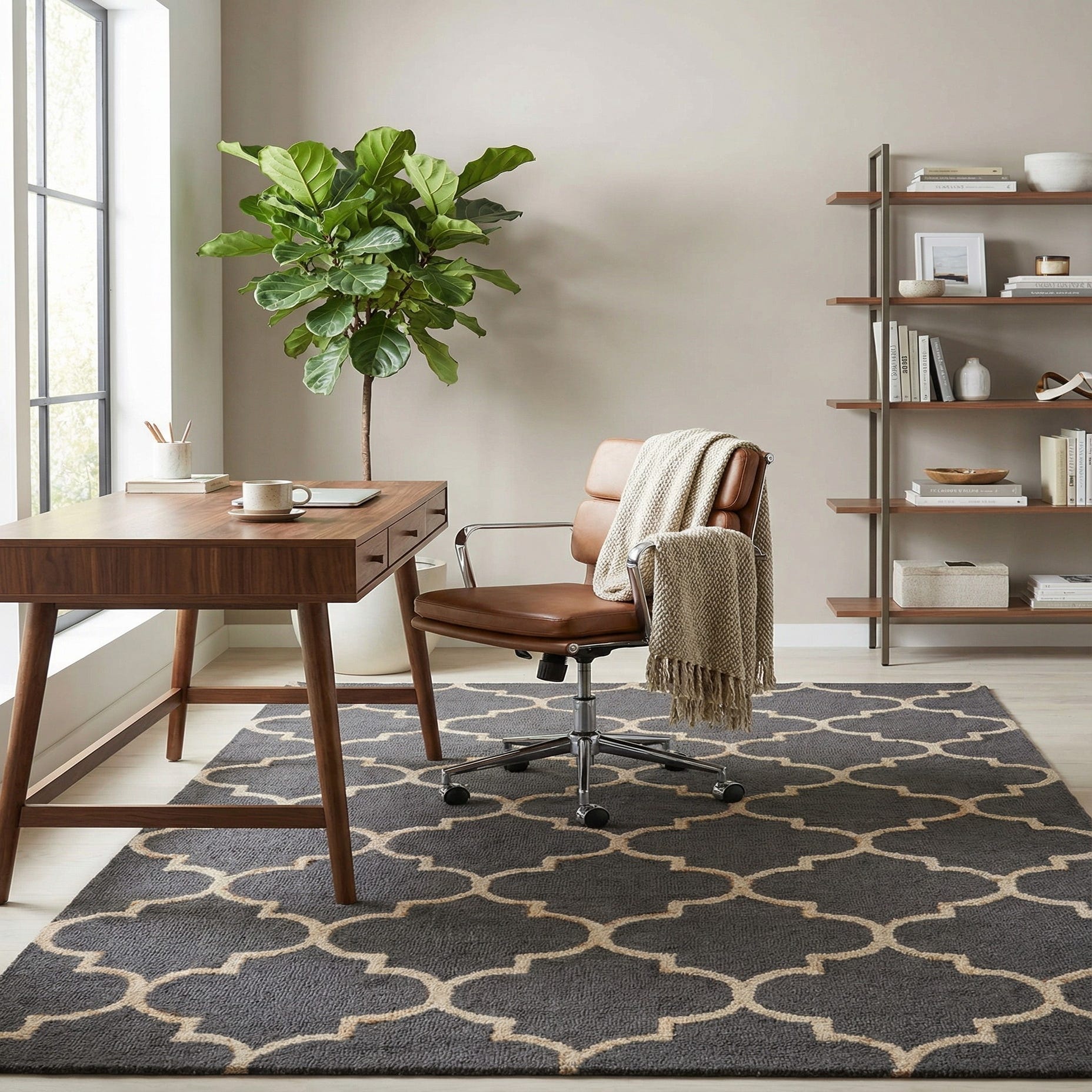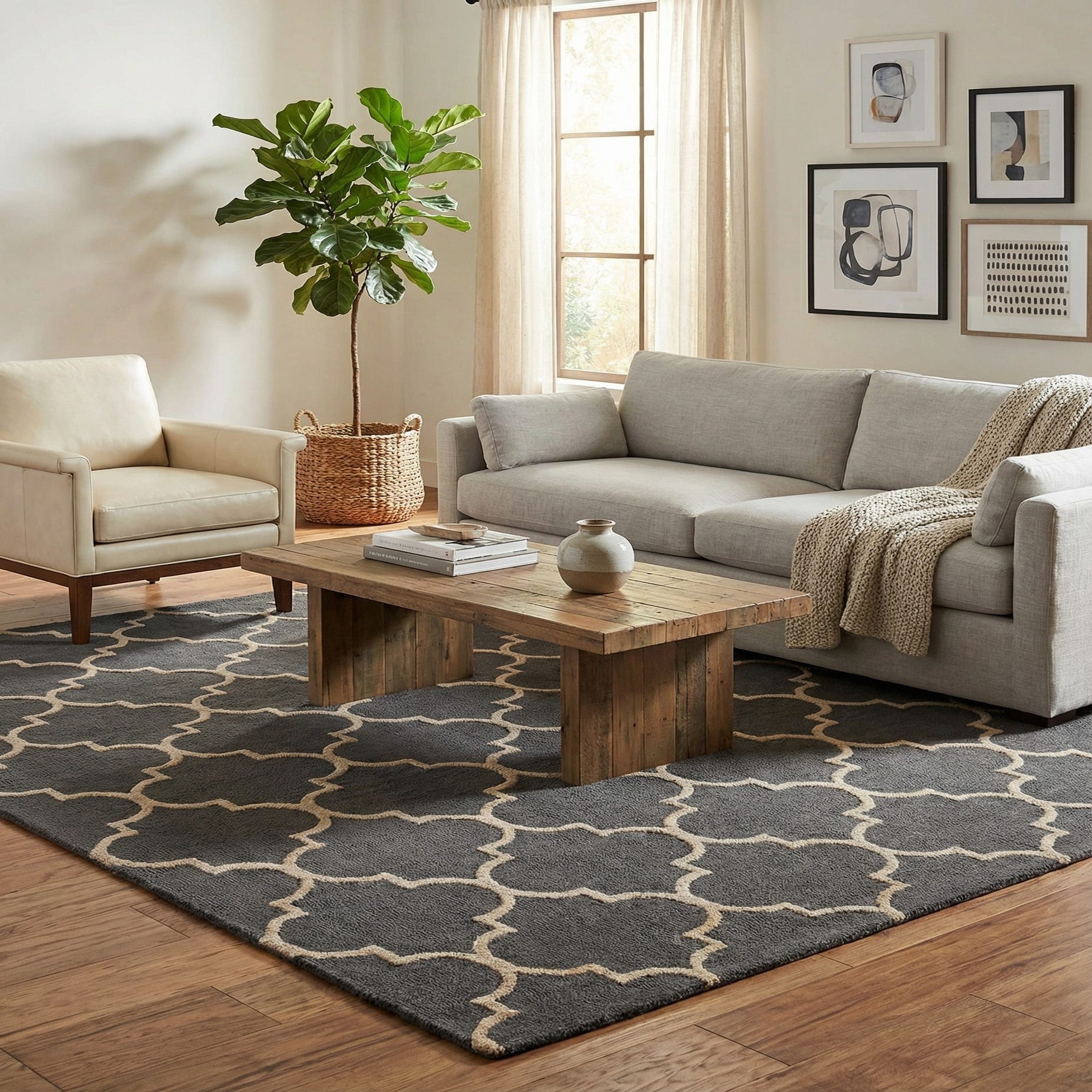 Primary color is Dark Gray. Colors in this rug include: Dark Gray, Ivory.