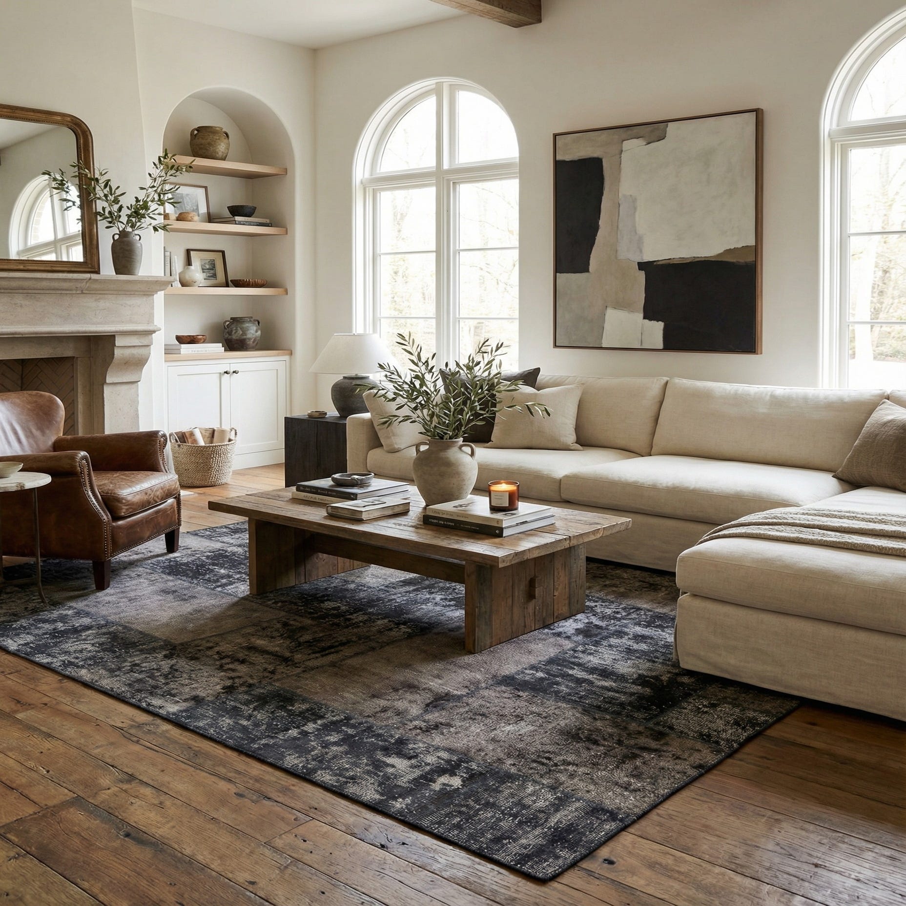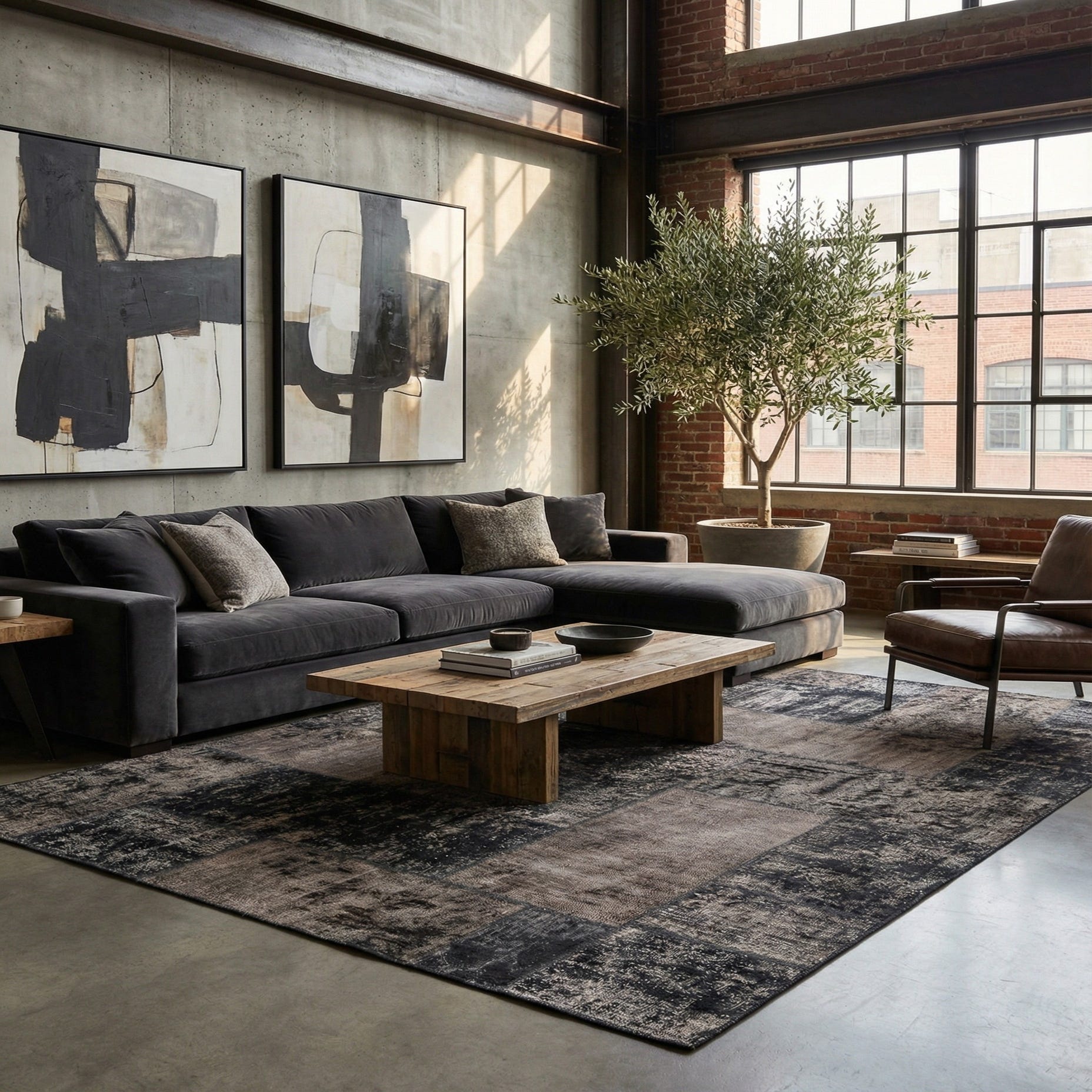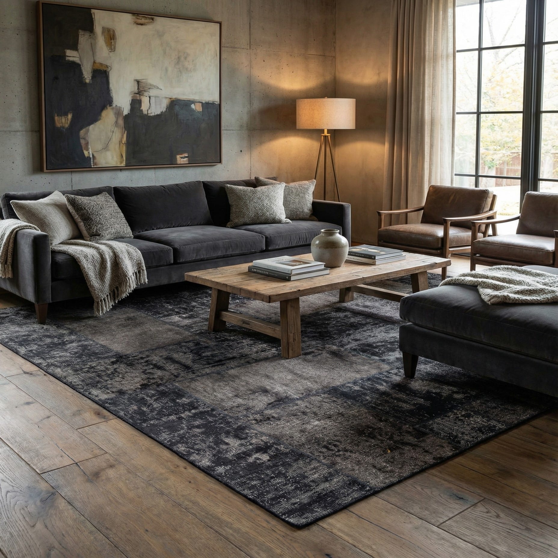 Primary color is Dark Gray. Colors in this rug include: Dark Gray, Black, Ivory, Gray.