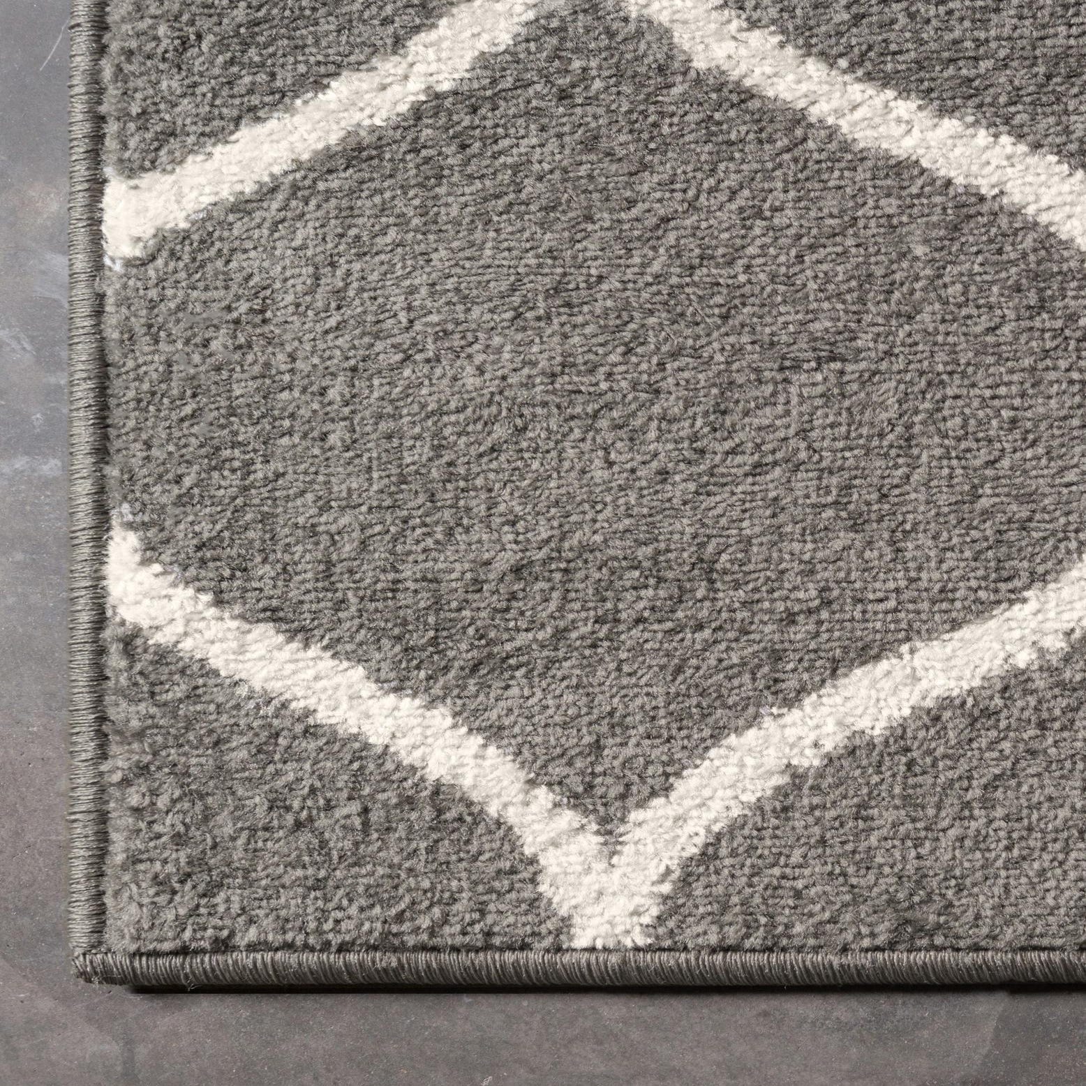 Primary color is Dark Gray. Colors in this rug include: Dark Gray, Ivory.