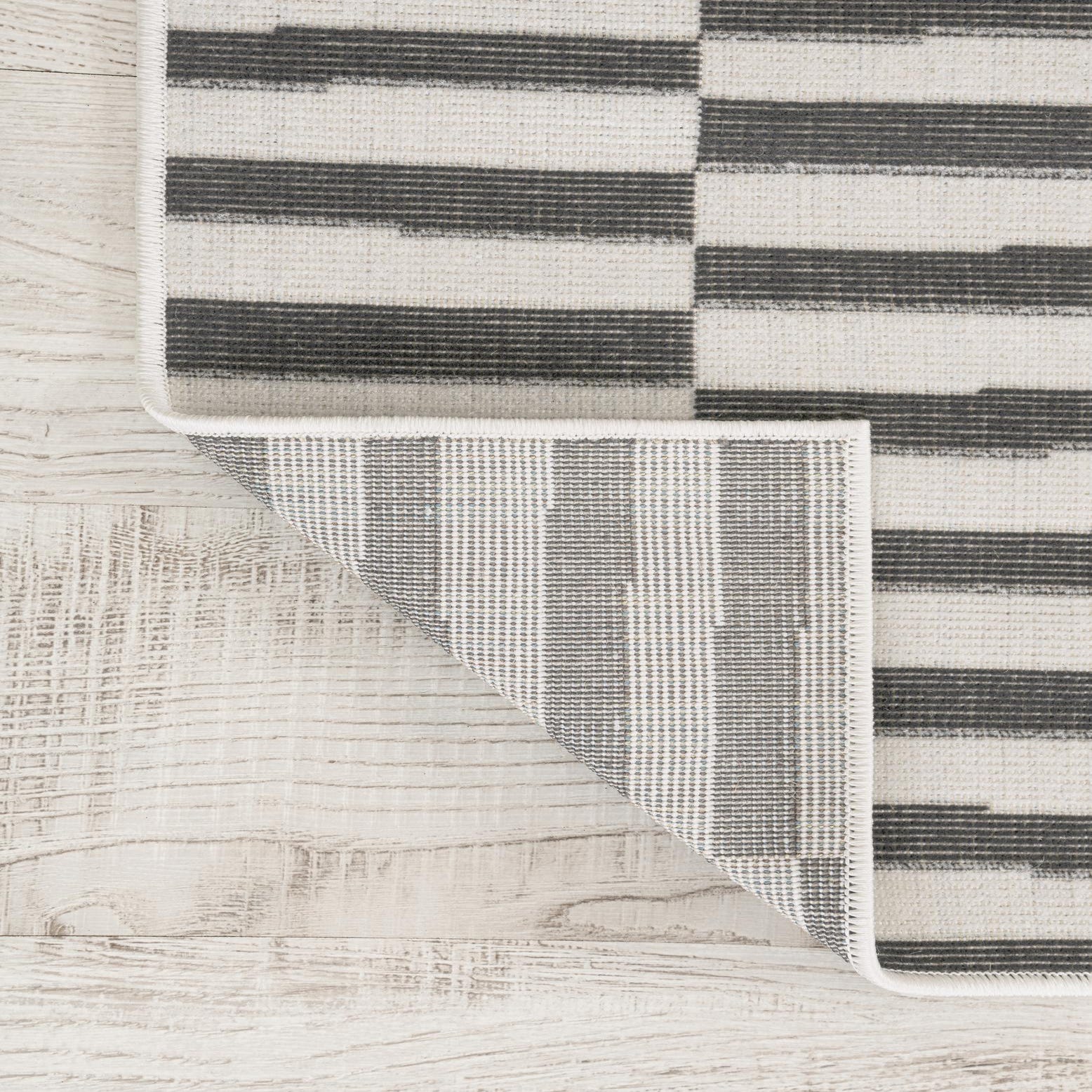 We bought 2 of these - one fr our living room and one for the kitchen - since the rooms are open and have the same color scheme. Pay attention to the pile height - it is pretty flat and not as plush as the other low pile rugs we ordered. And because of that it is taking a while to lay completely flat. The larger size flattened out quicker than the smaller size and we can still see some ripples and the corners still stick up. Color is gorgeous though (we got the teal) and size is accurate.