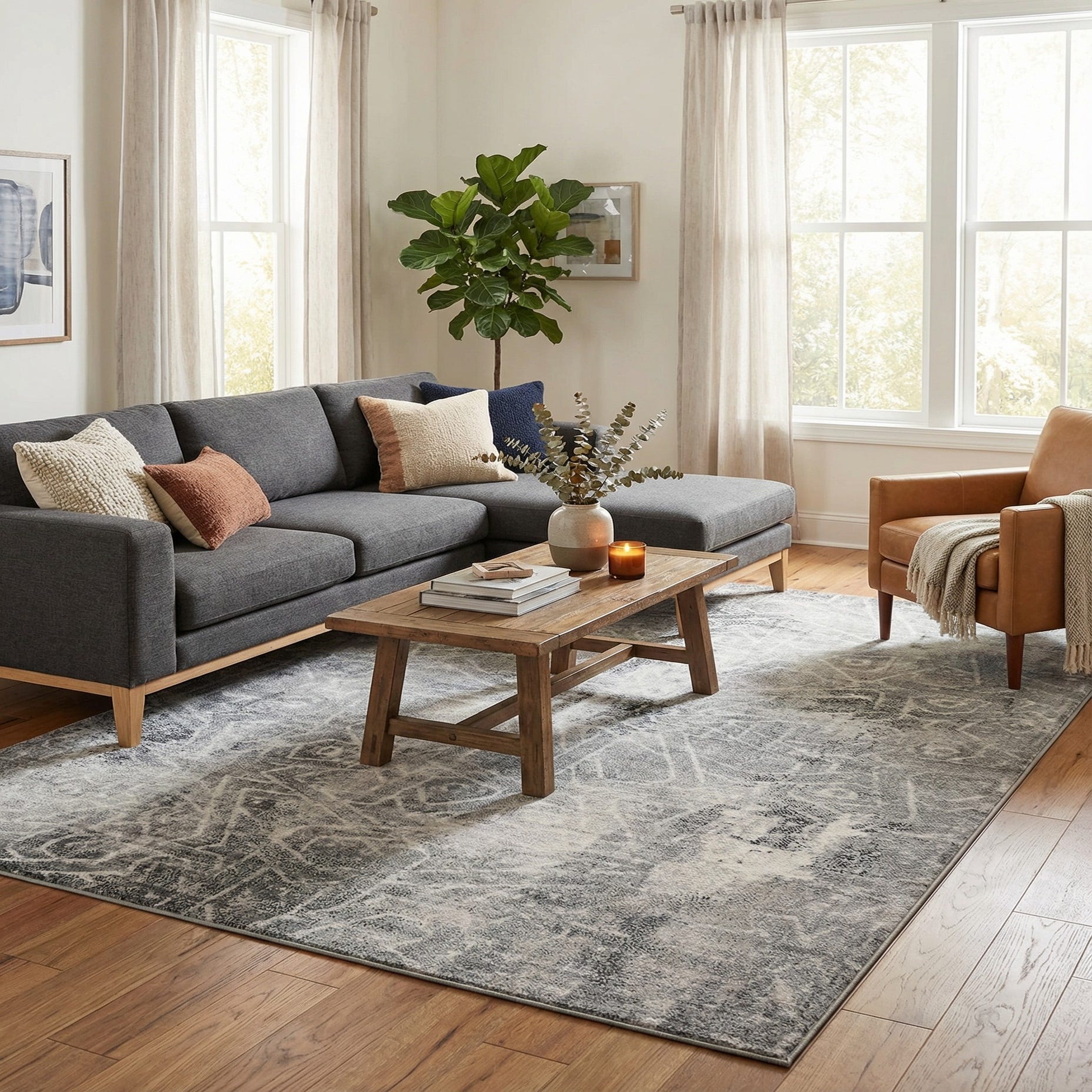 Primary color is Dark Gray. Colors in this rug include: Dark Gray, Gray, Ivory.