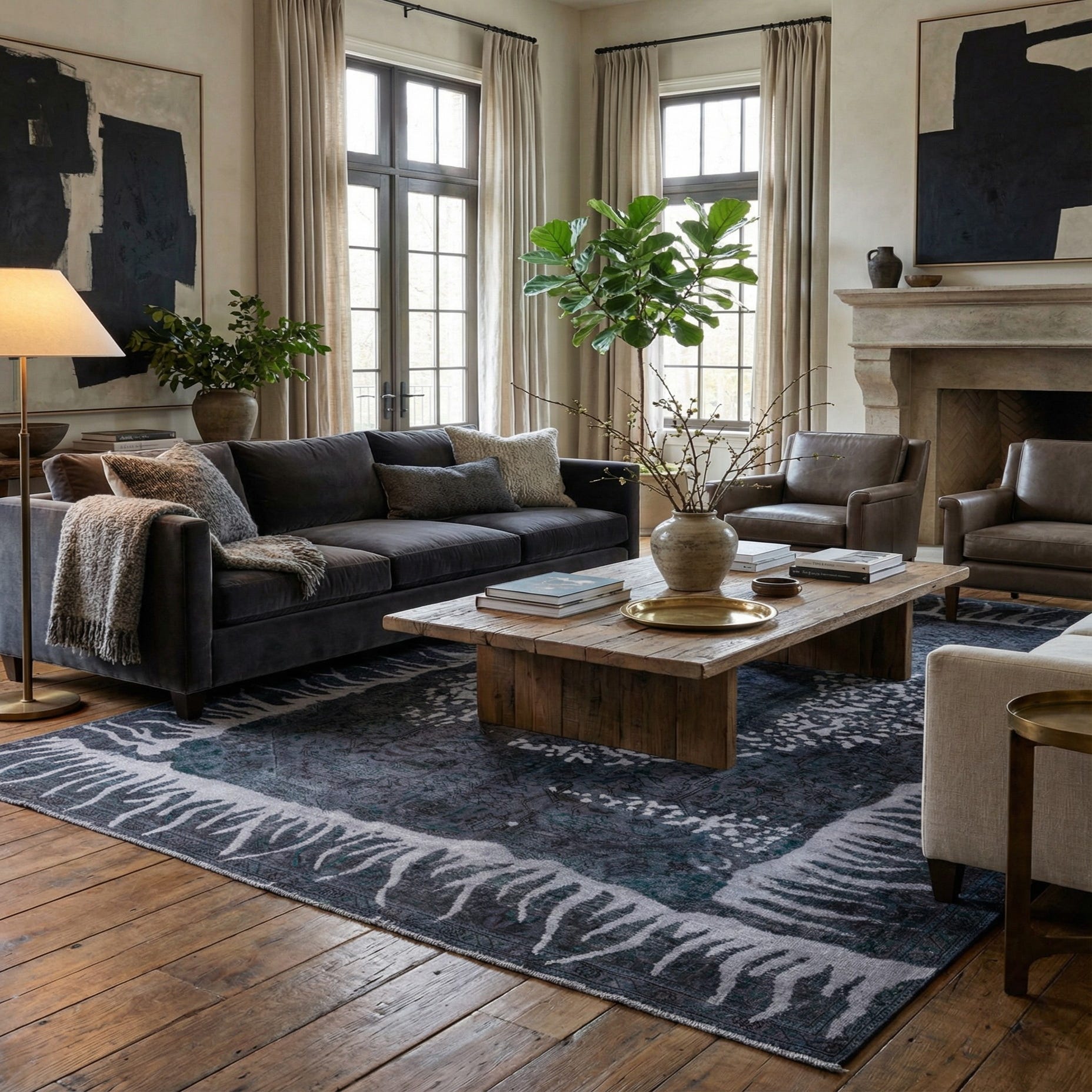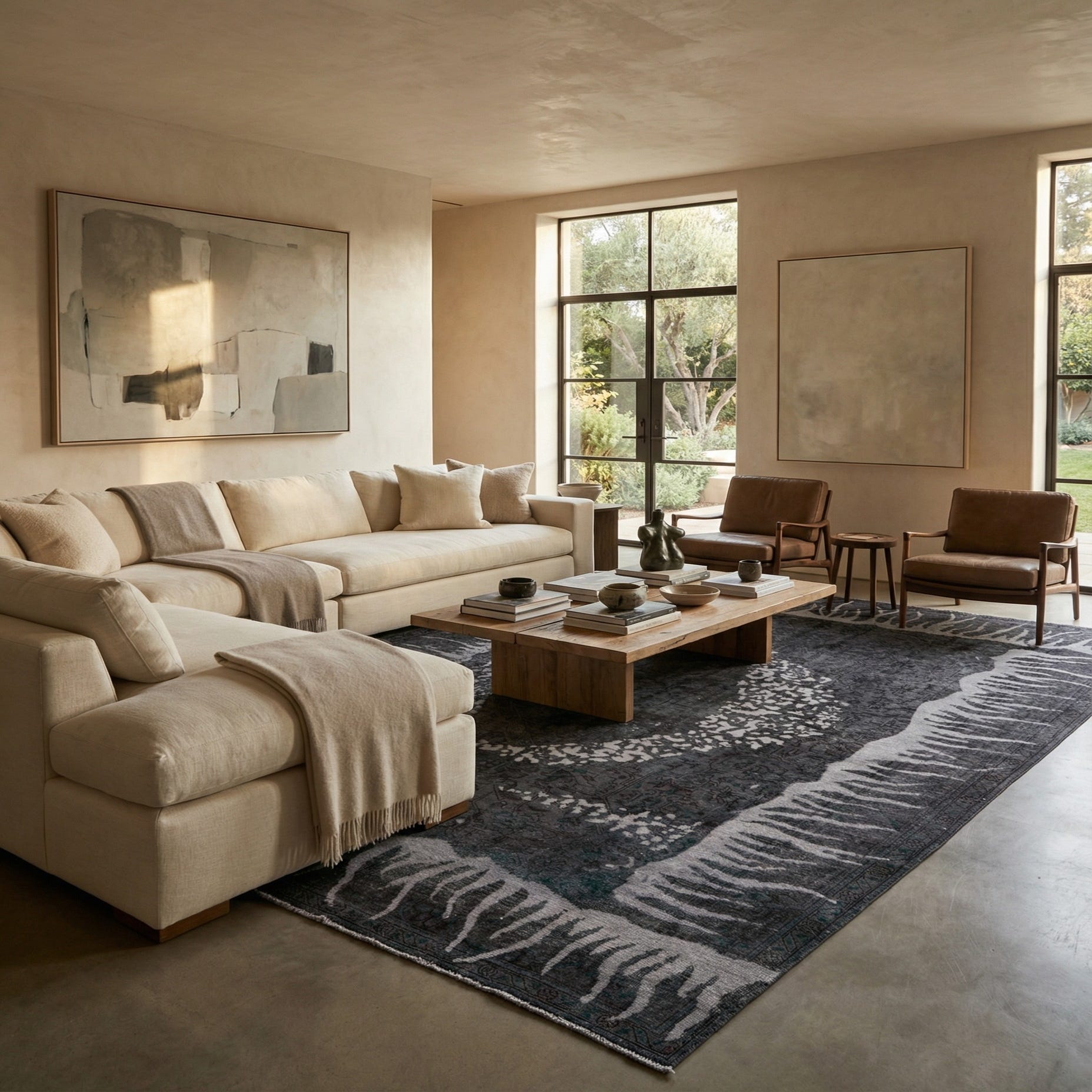 Primary color is Dark Gray. Colors in this rug include: Dark Gray, Black, Ivory, Gray.