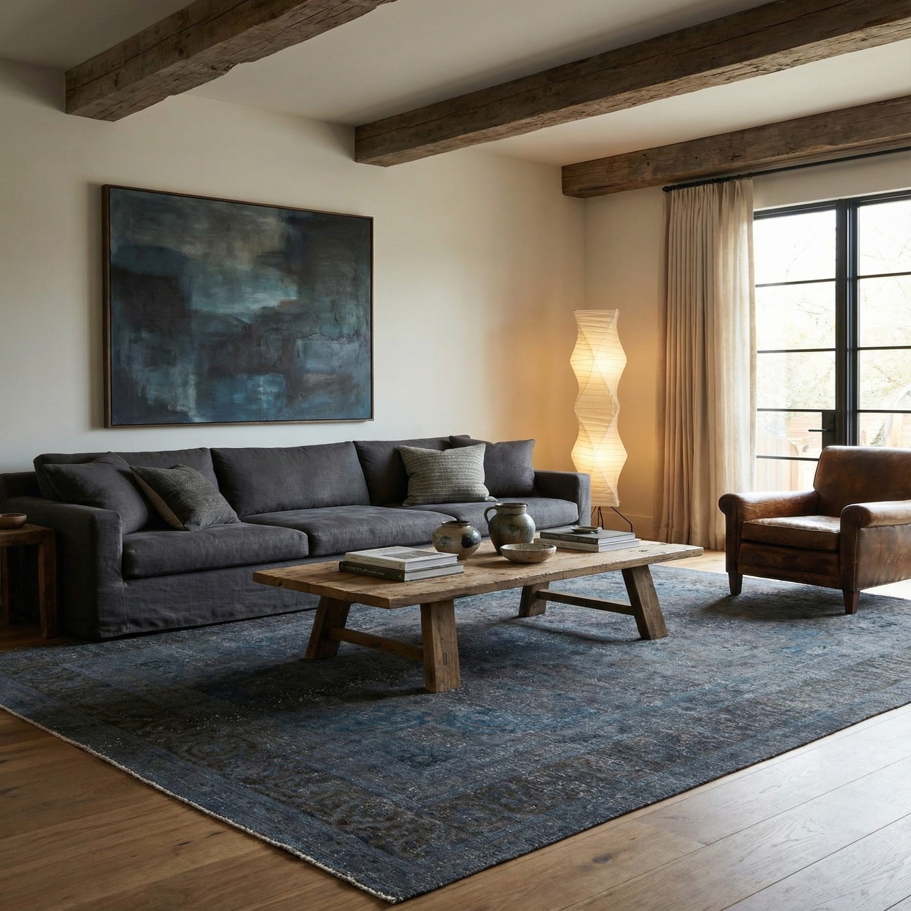 Primary color is Dark Gray. Colors in this rug include: Dark Gray, Black, Navy Blue.