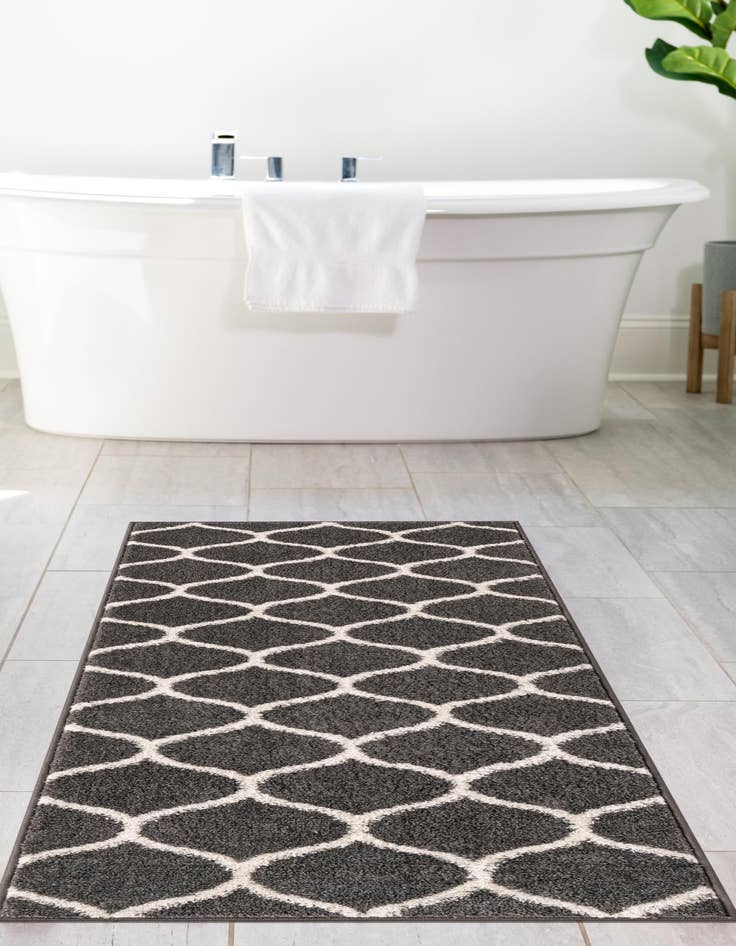 Primary color is Dark Gray. Colors in this rug include: Dark Gray, Ivory.