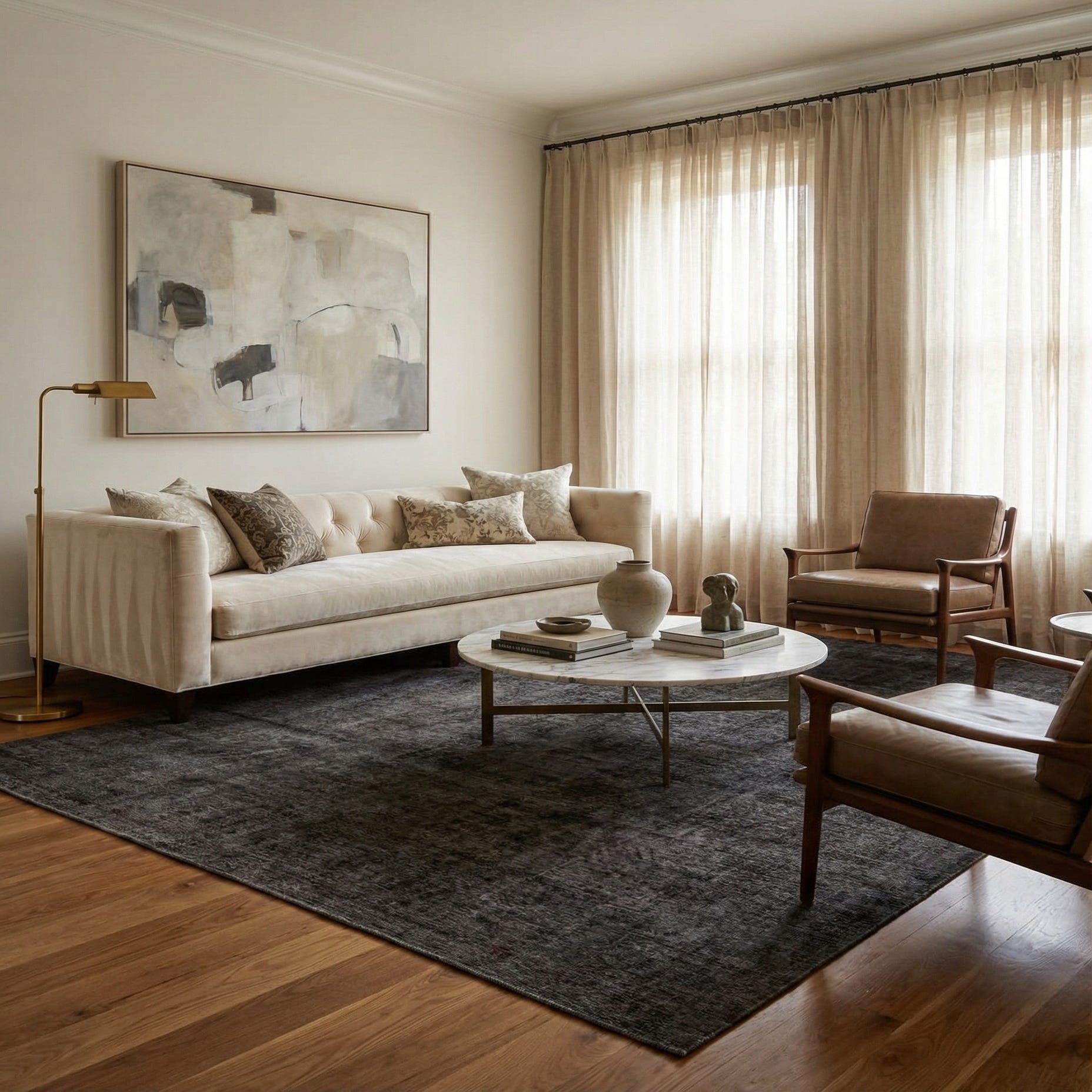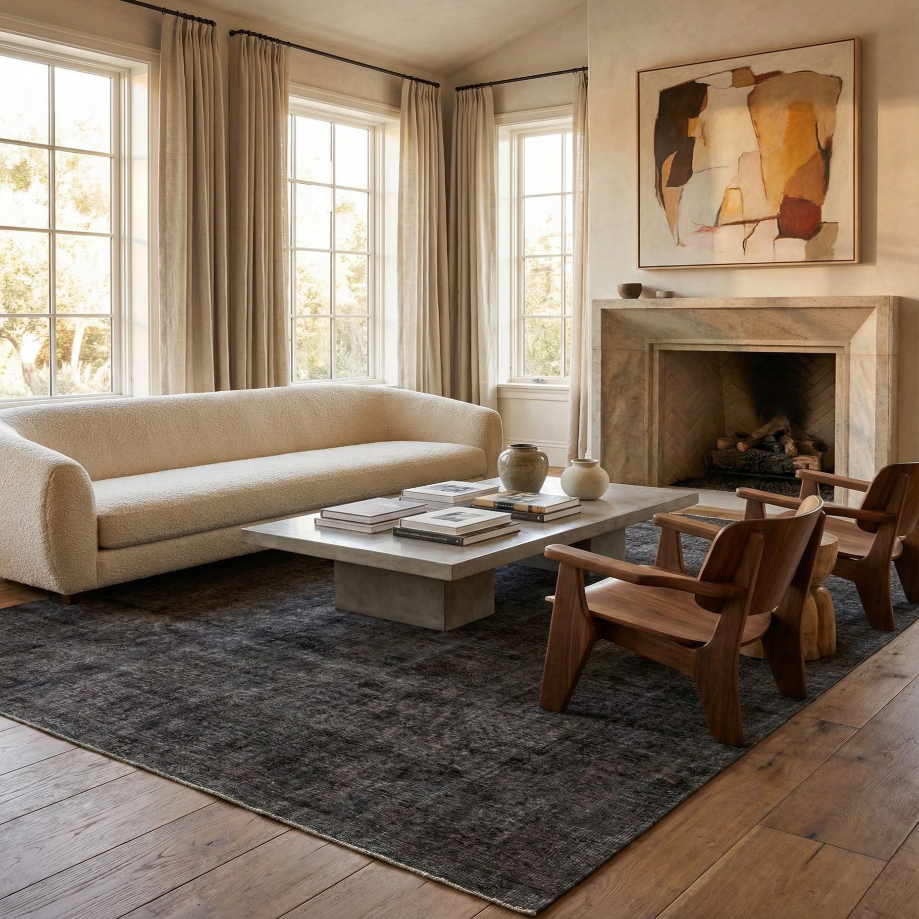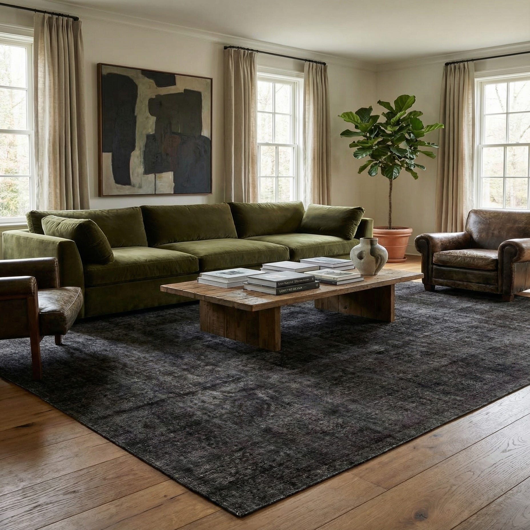Primary color is Dark Gray. Colors in this rug include: Dark Gray, Ivory, Gray, Black.
