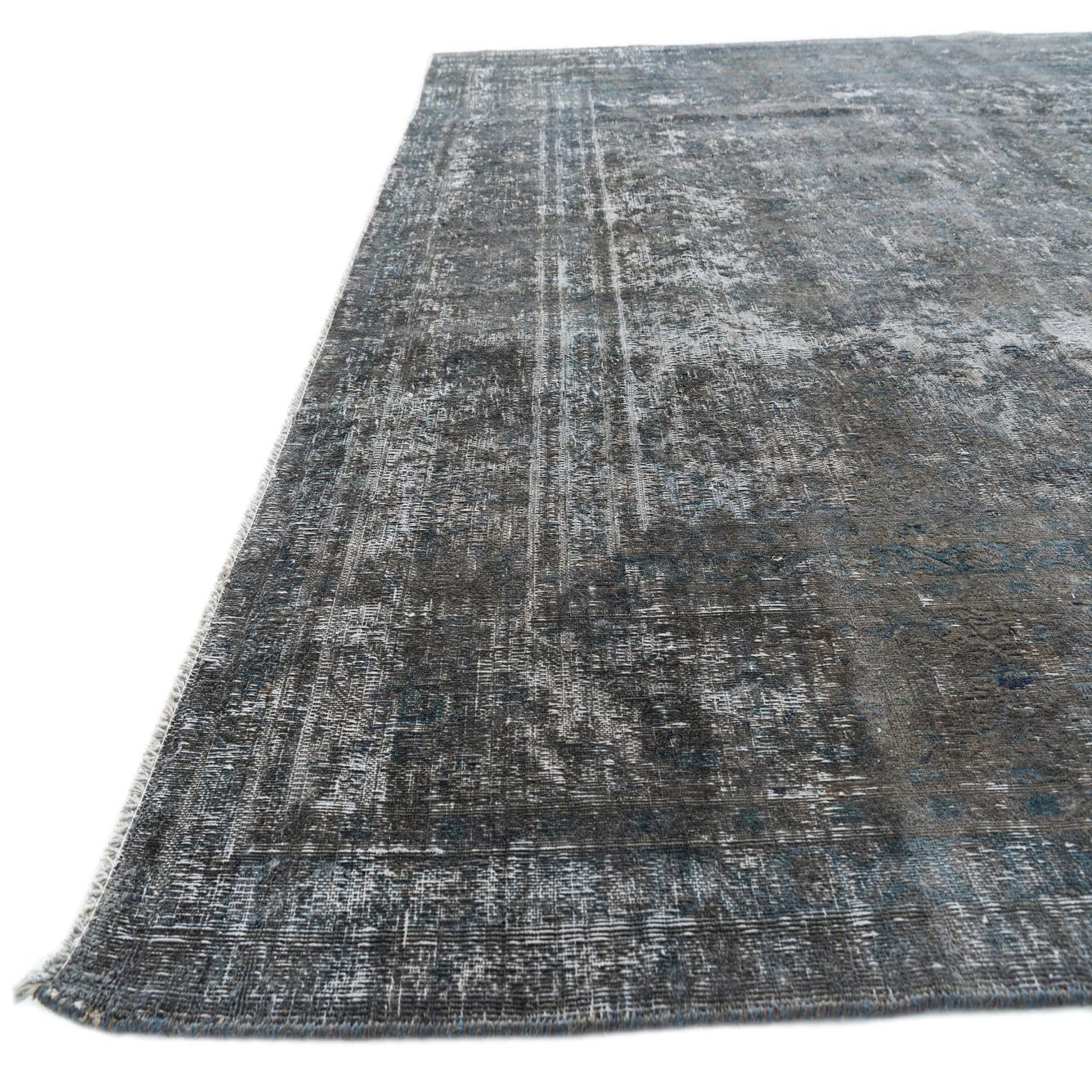 This Persian Ultra Vintage rug is an antique Persian Rug that has been washed, over-dyed, and then shaved down to a low pile. Look at the detail pictures to fully appreciate the uniqueness of this piece.