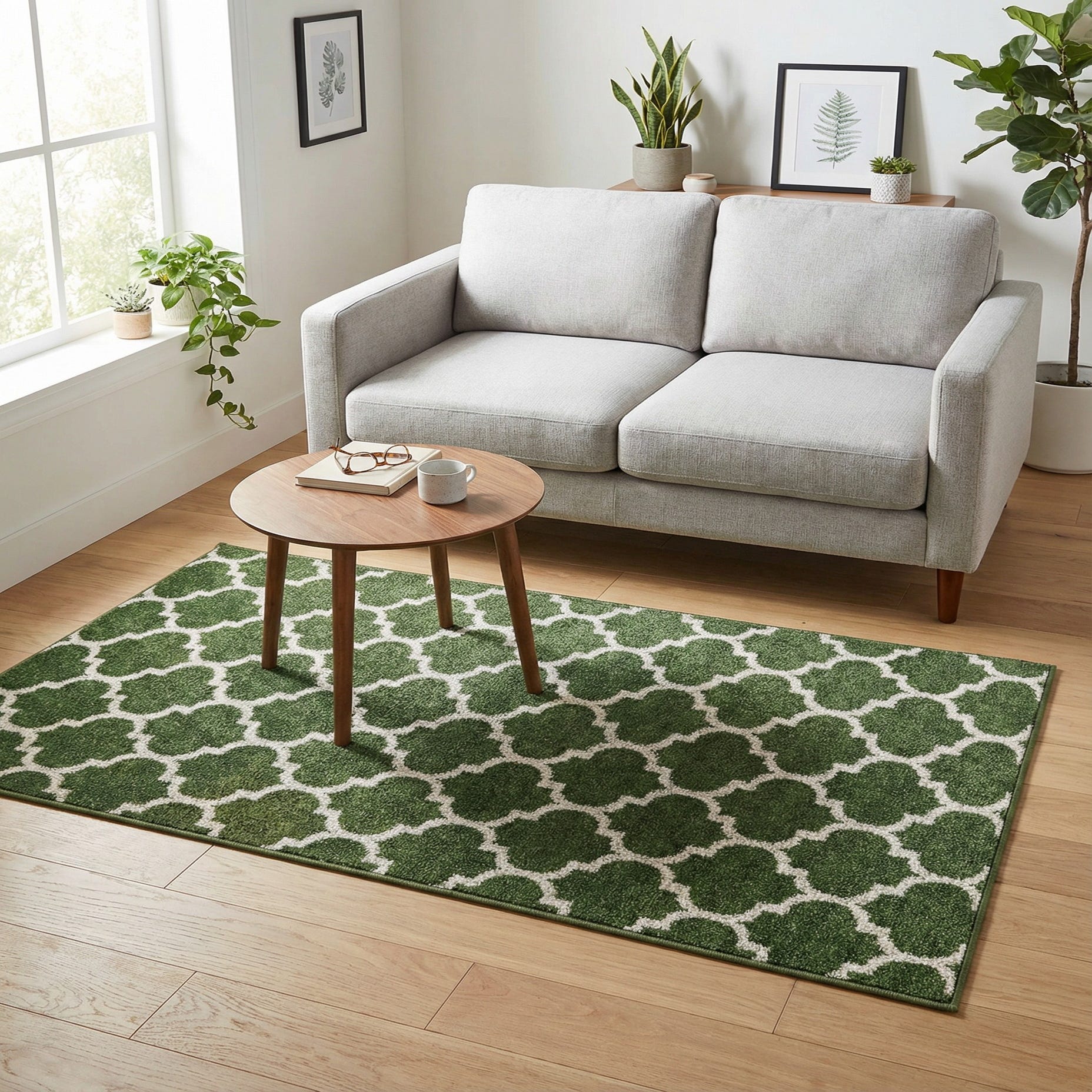 Primary color is Dark Green. Colors in this rug include: Dark Green, Beige, Green.