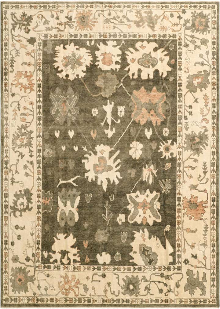 Primary color is Dark Green. Colors in this rug include: Dark Green, Beige, Brown, Ivory.