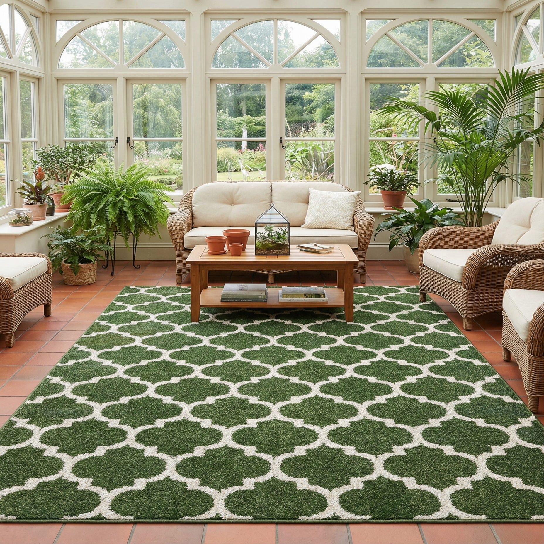 Primary color is Dark Green. Colors in this rug include: Dark Green, Beige, Green.