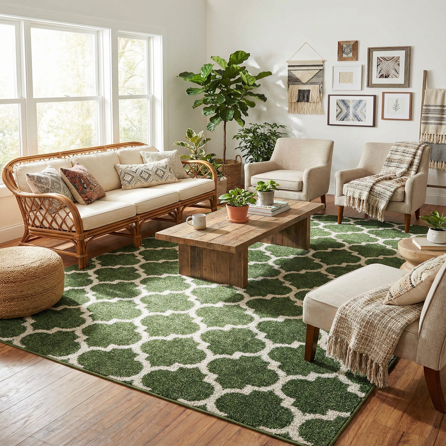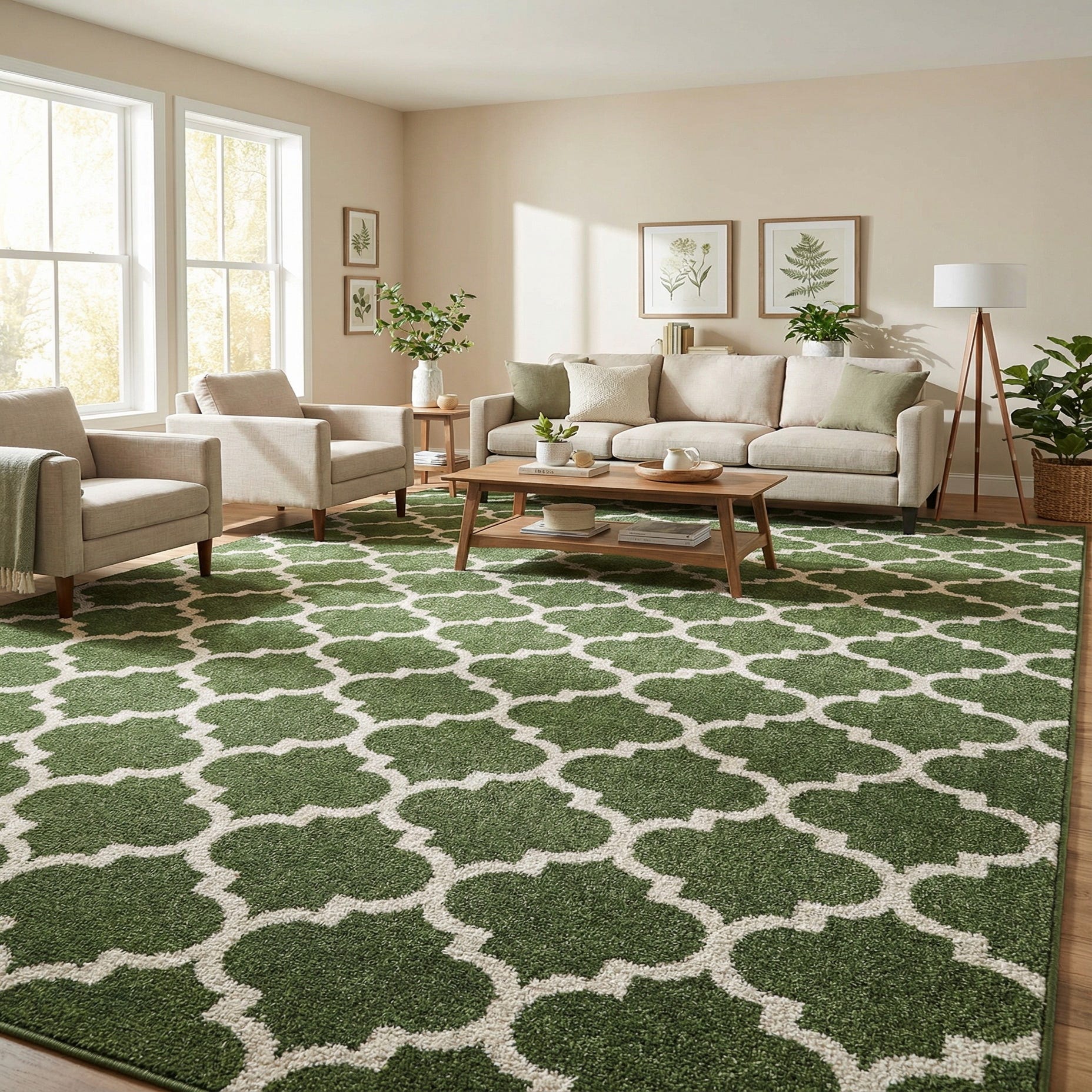 Primary color is Dark Green. Colors in this rug include: Dark Green, Beige, Green.