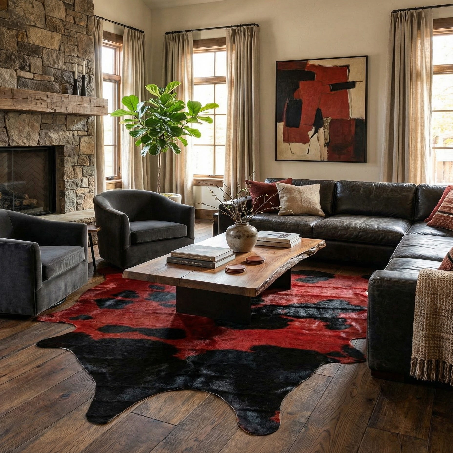5' 10 x 6' 7 Cowhide Leather Square Rug
