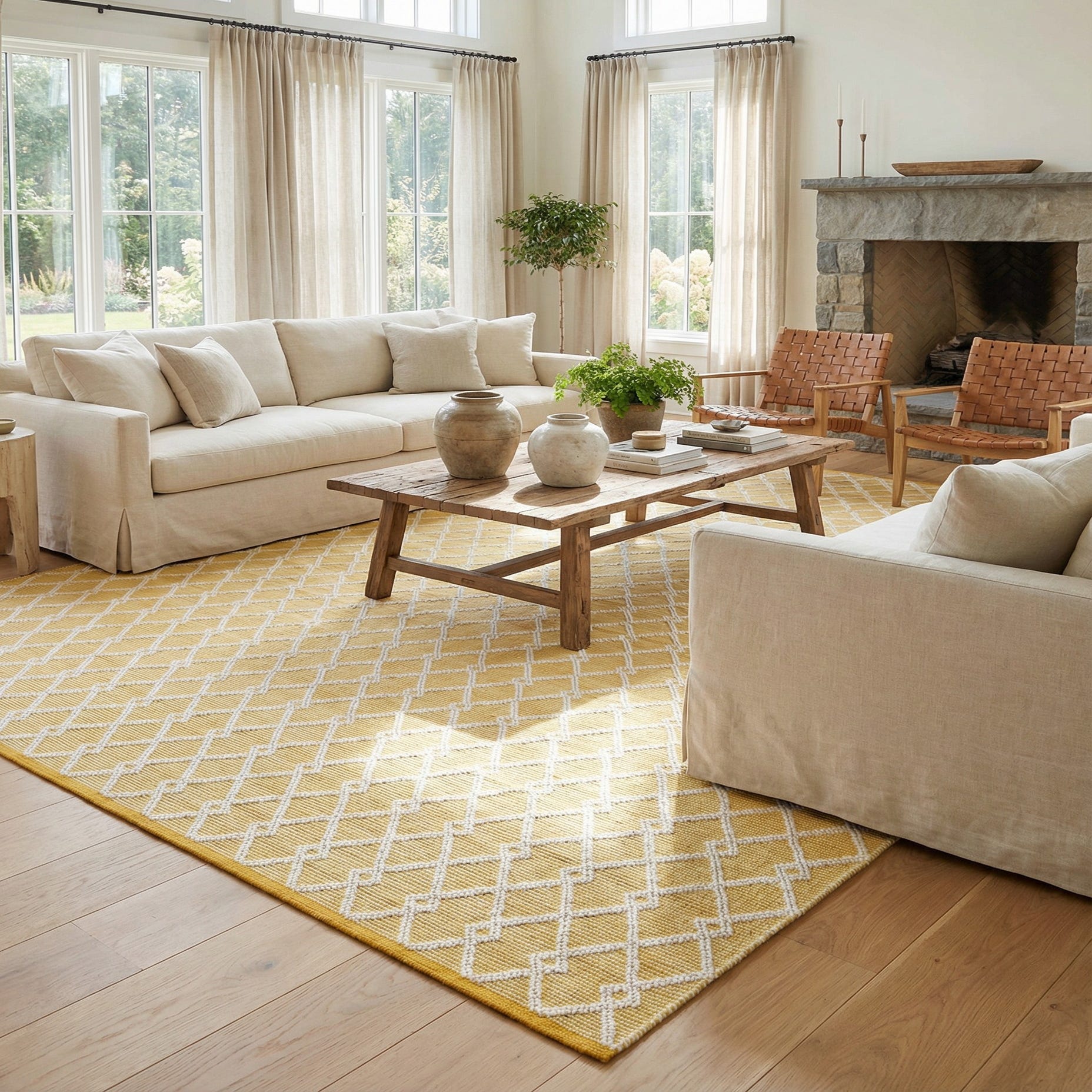 Primary color is English Daisy. Colors in this rug include: English Daisy, Ivory.