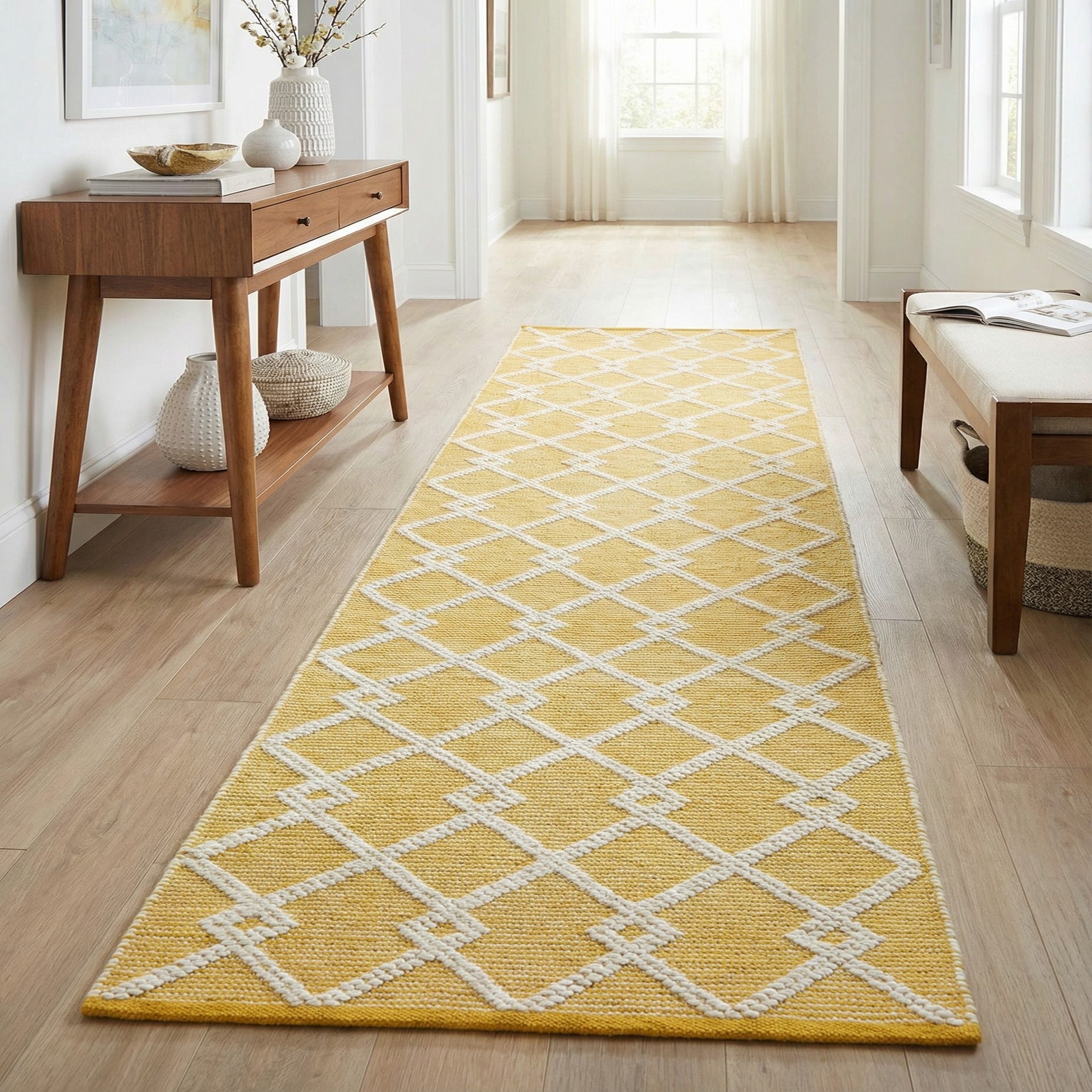 Primary color is English Daisy. Colors in this rug include: English Daisy, Ivory.