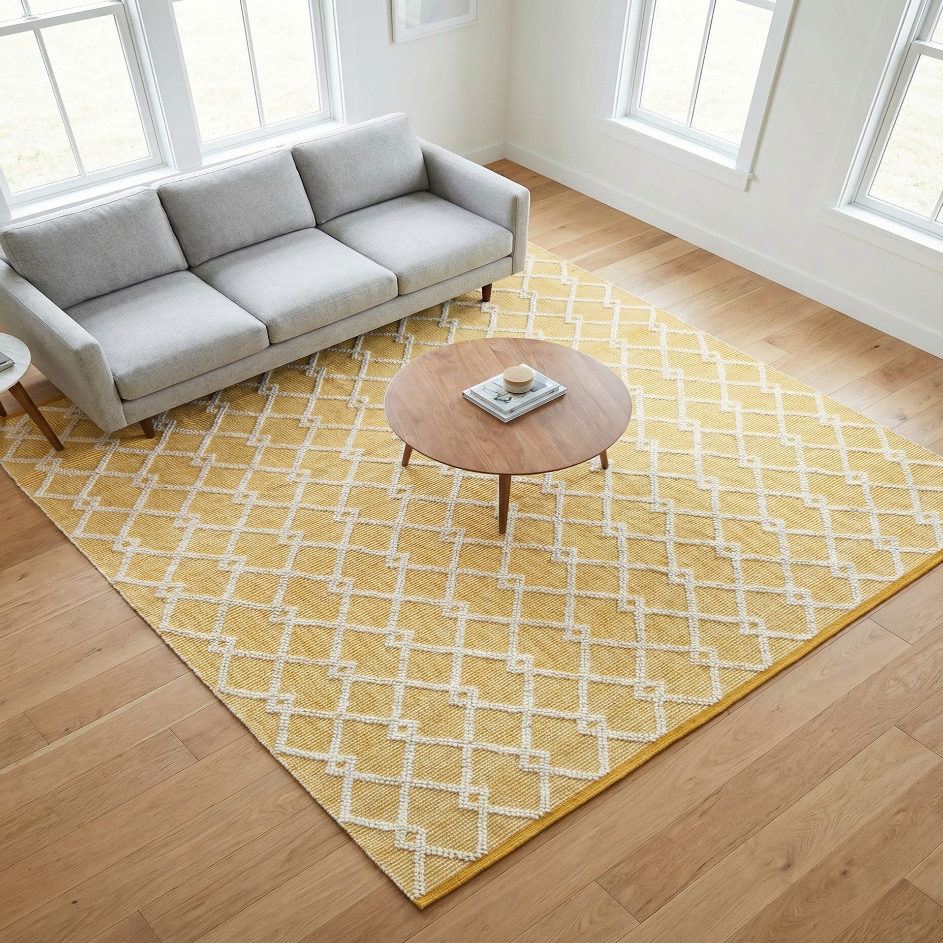 Primary color is English Daisy. Colors in this rug include: English Daisy, Ivory.