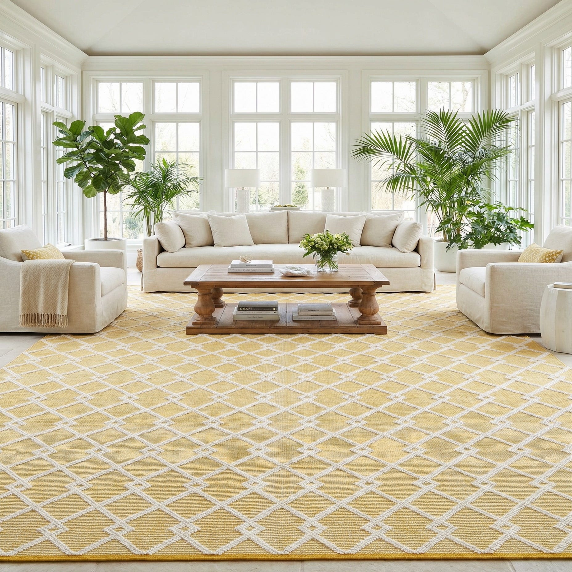 Primary color is English Daisy. Colors in this rug include: English Daisy, Ivory.
