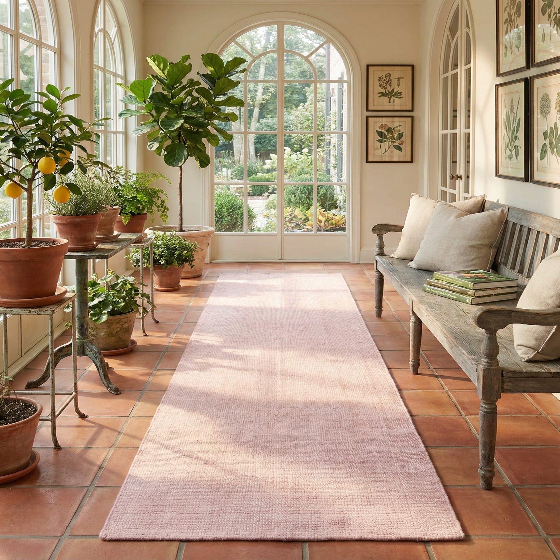 Primary color is English Rose. Colors in this rug include: English Rose, Ivory.