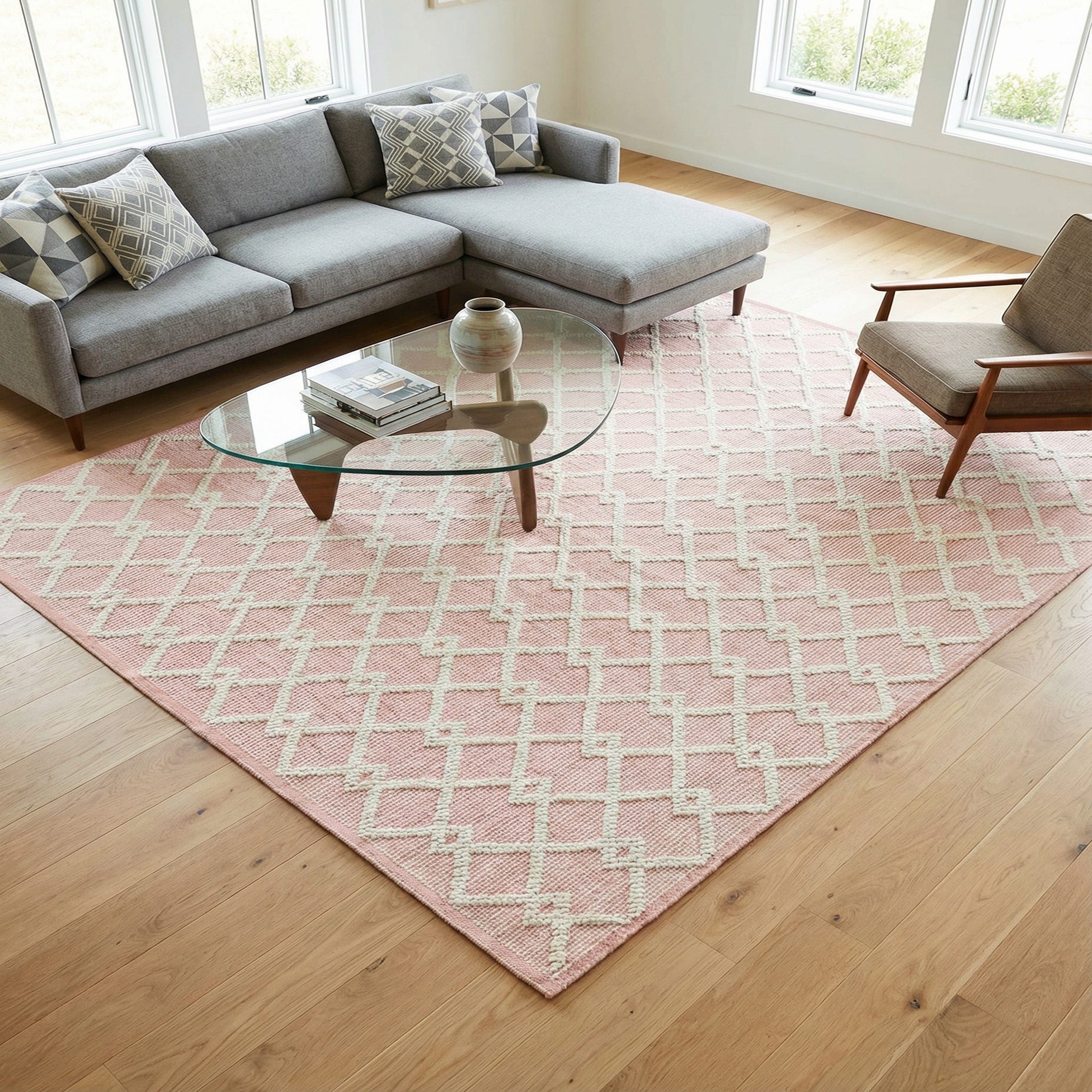 Primary color is English Rose. Colors in this rug include: English Rose, Ivory.