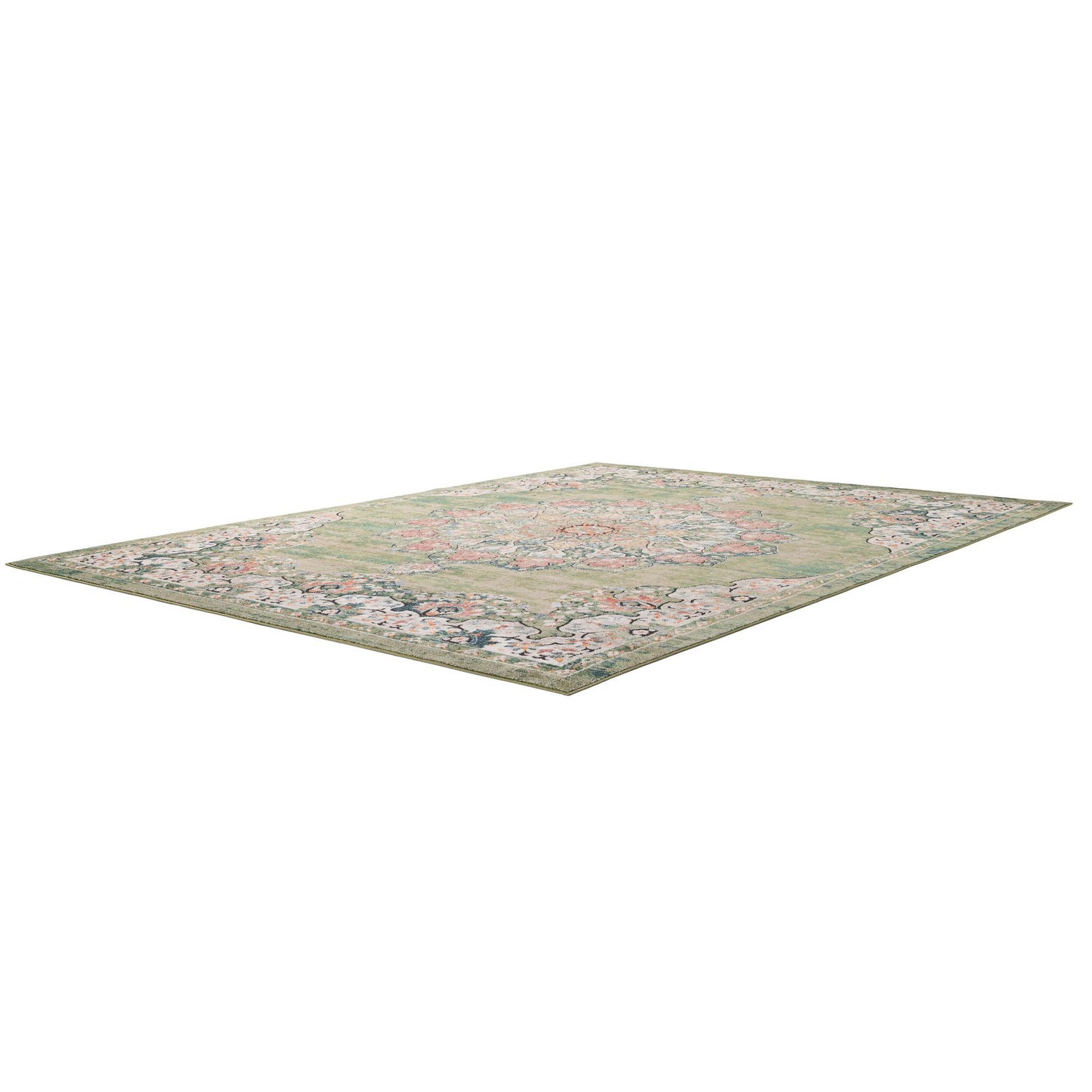Primary color is Fern Green. Colors in this rug include: Fern Green, Beige, Black, Blue, Ivory, Navy Blue, Orange, Plum Red, Puce.