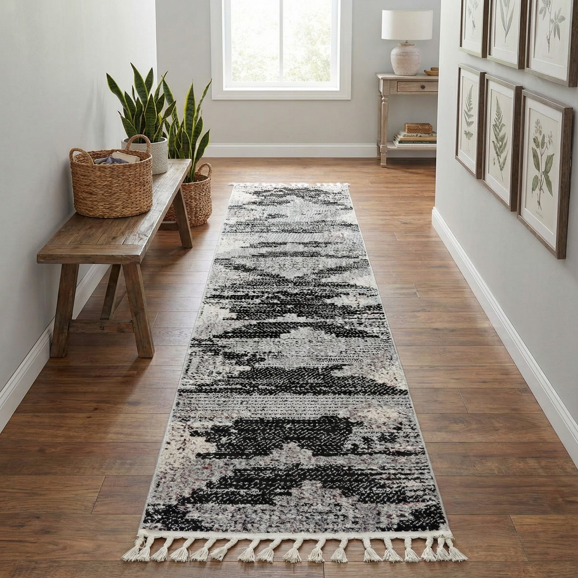 Primary color is Fossil Gray. Colors in this rug include: Fossil Gray, Black, Gray, Ivory.