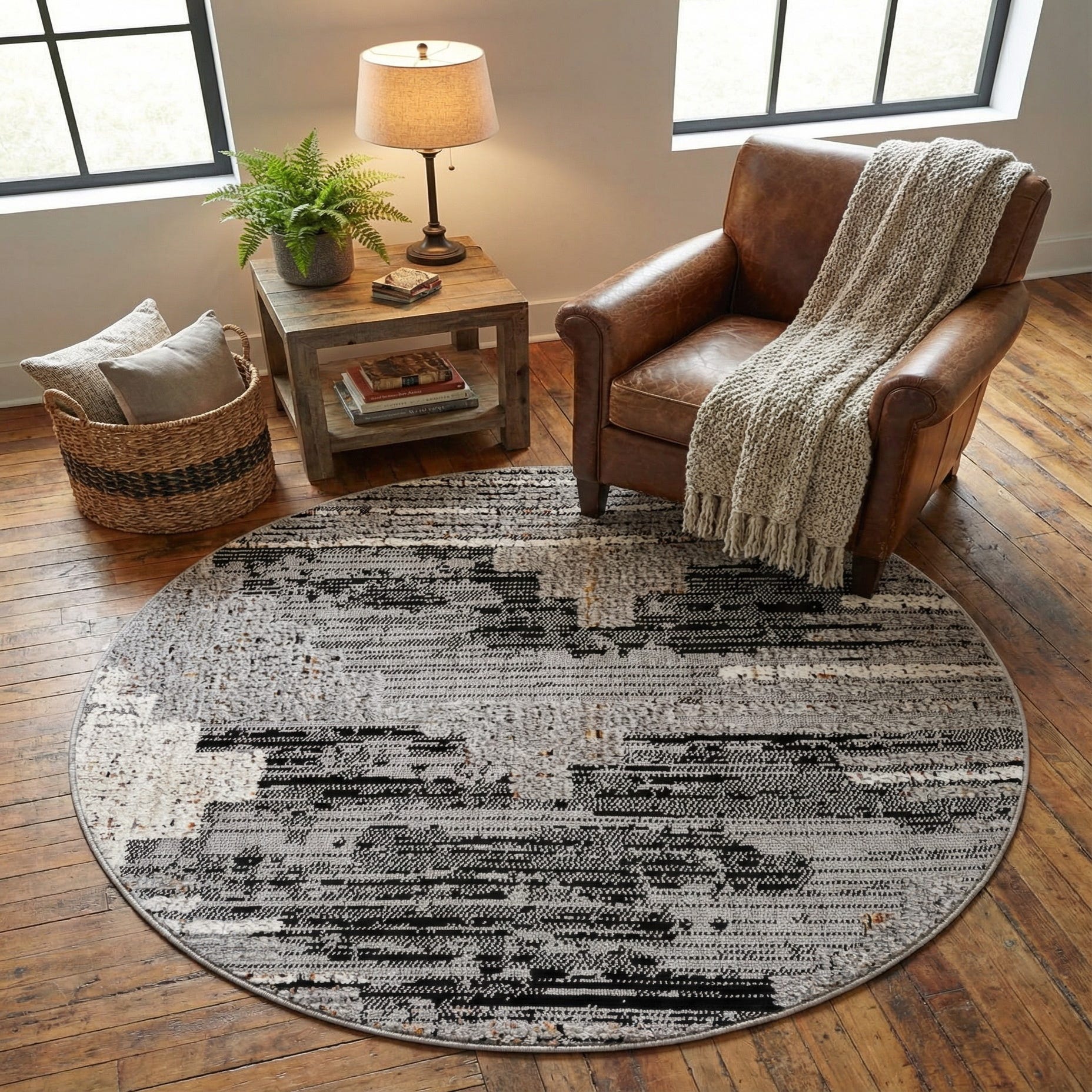 Primary color is Fossil Gray. Colors in this rug include: Fossil Gray, Black, Ivory, Gray.