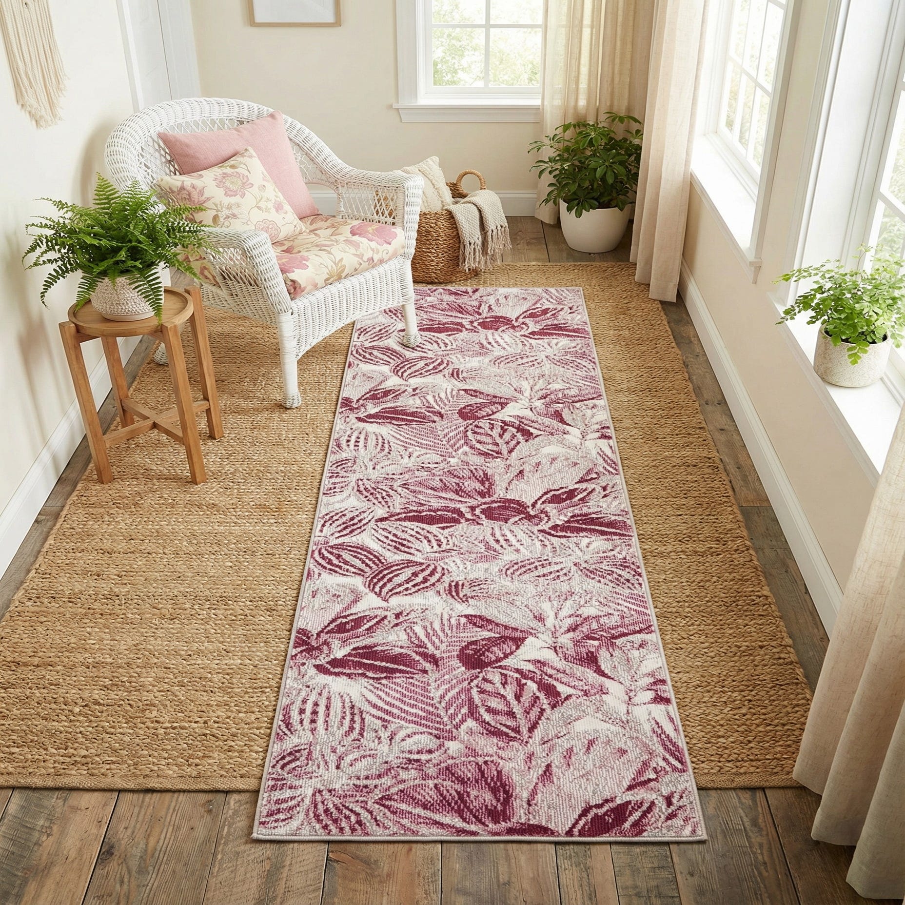 Primary color is Fuchsia. Colors in this rug include: Fuchsia, Ivory, Pink.