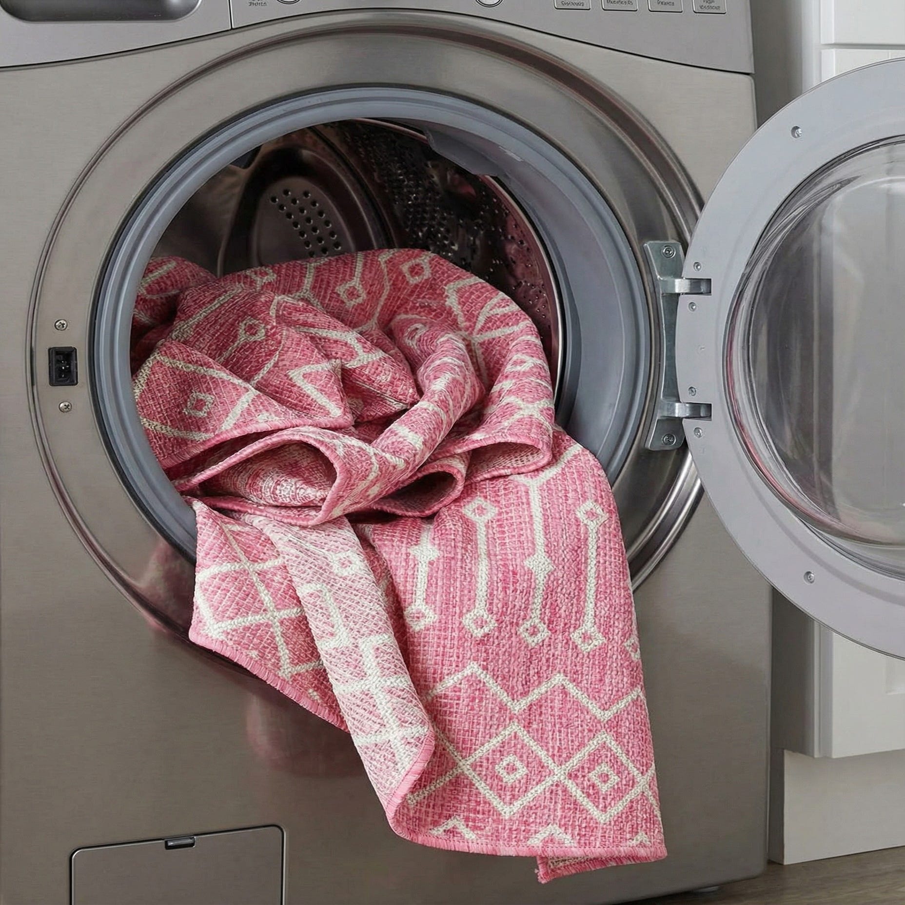 Primary color is Fuschia. Colors in this rug include: Fuschia, Gray.