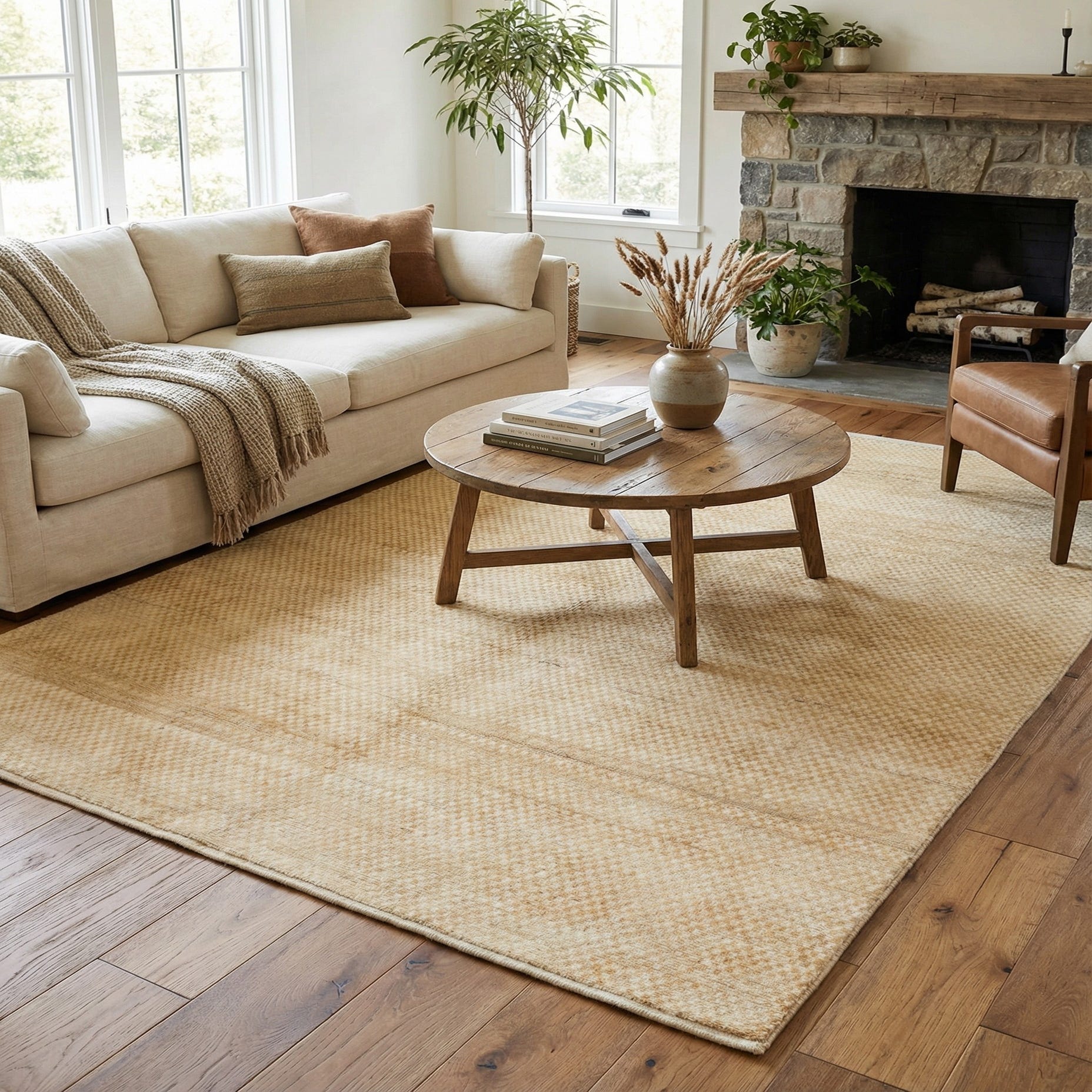 Primary color is Gold. Colors in this rug include: Gold, Cream.