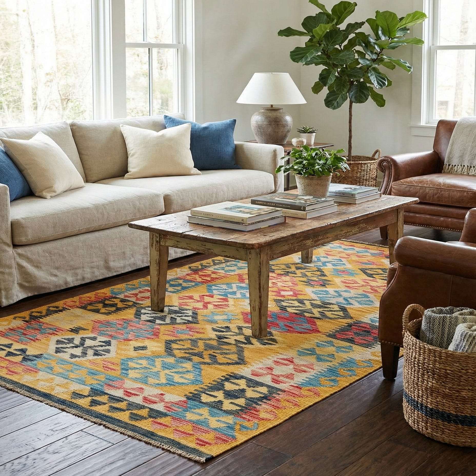 3' 4 x 6' 4 Hand Woven Kilim Maymana Wool Rug