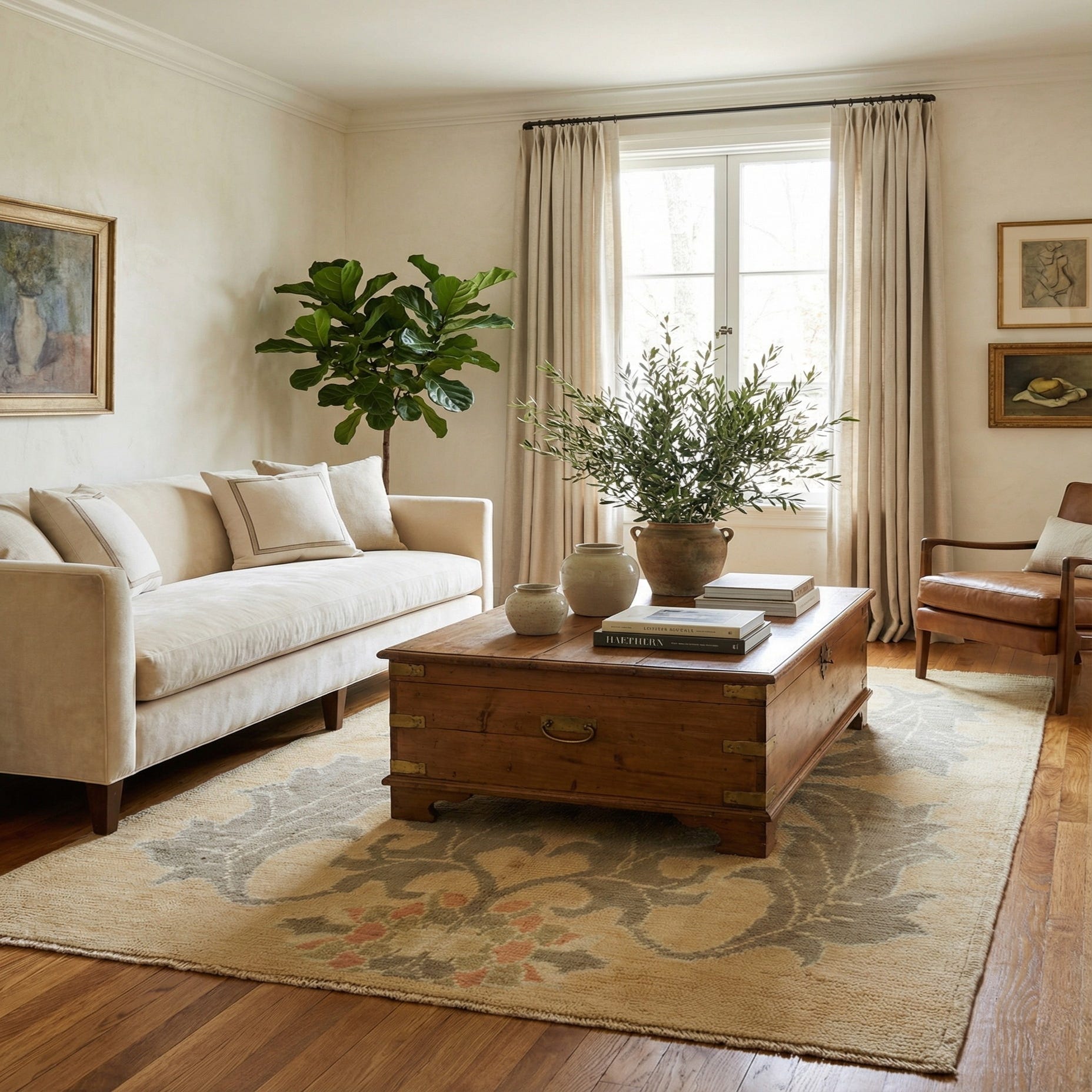 Primary image 4' 3 x 6' 8  Hand Knotted Oushak Wool Rug