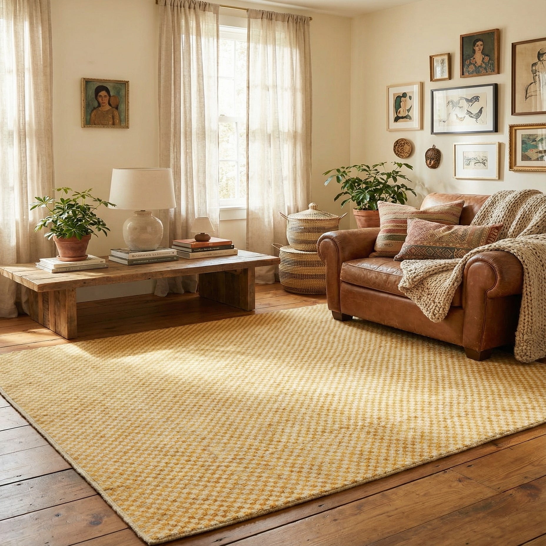 Primary color is Gold. Colors in this rug include: Gold, Cream.