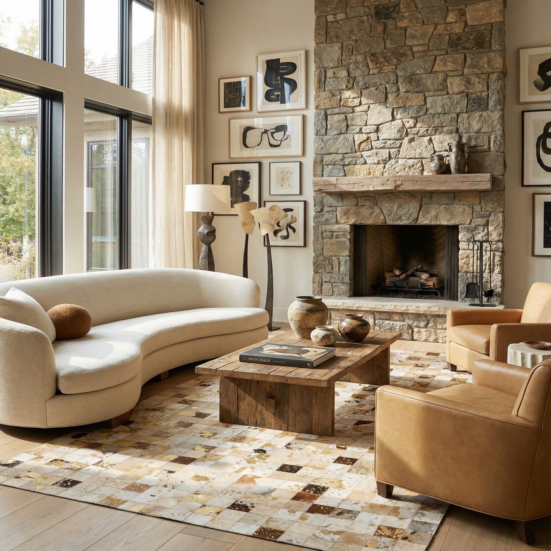 4' 10 x 8' Cowhide Leather Rug