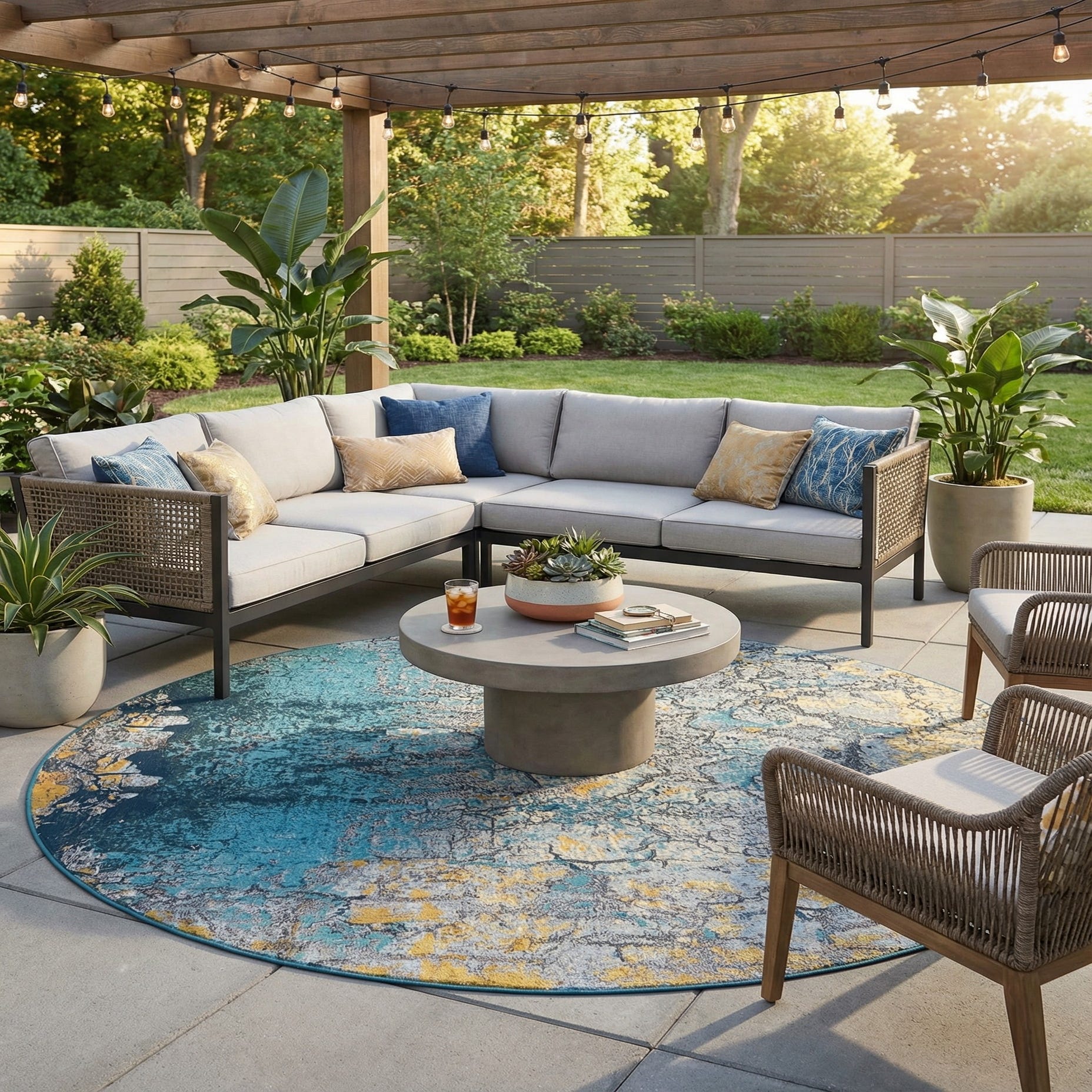 7' 10 x 7' 10 Washable Modern Indoor / Outdoor Round Rug