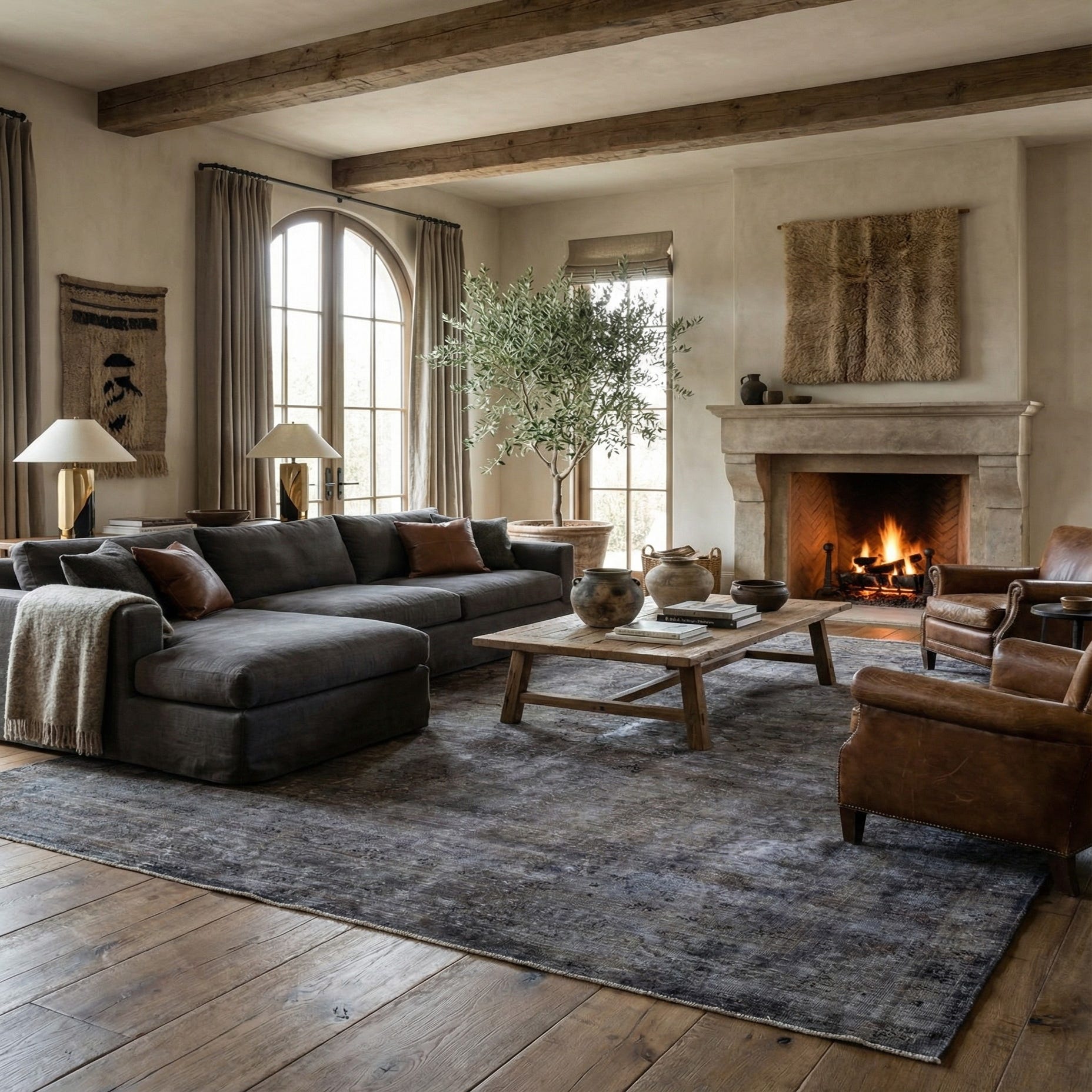 Primary color is Graphite Gray. Colors in this rug include: Graphite Gray, Black, Brown, Gray.