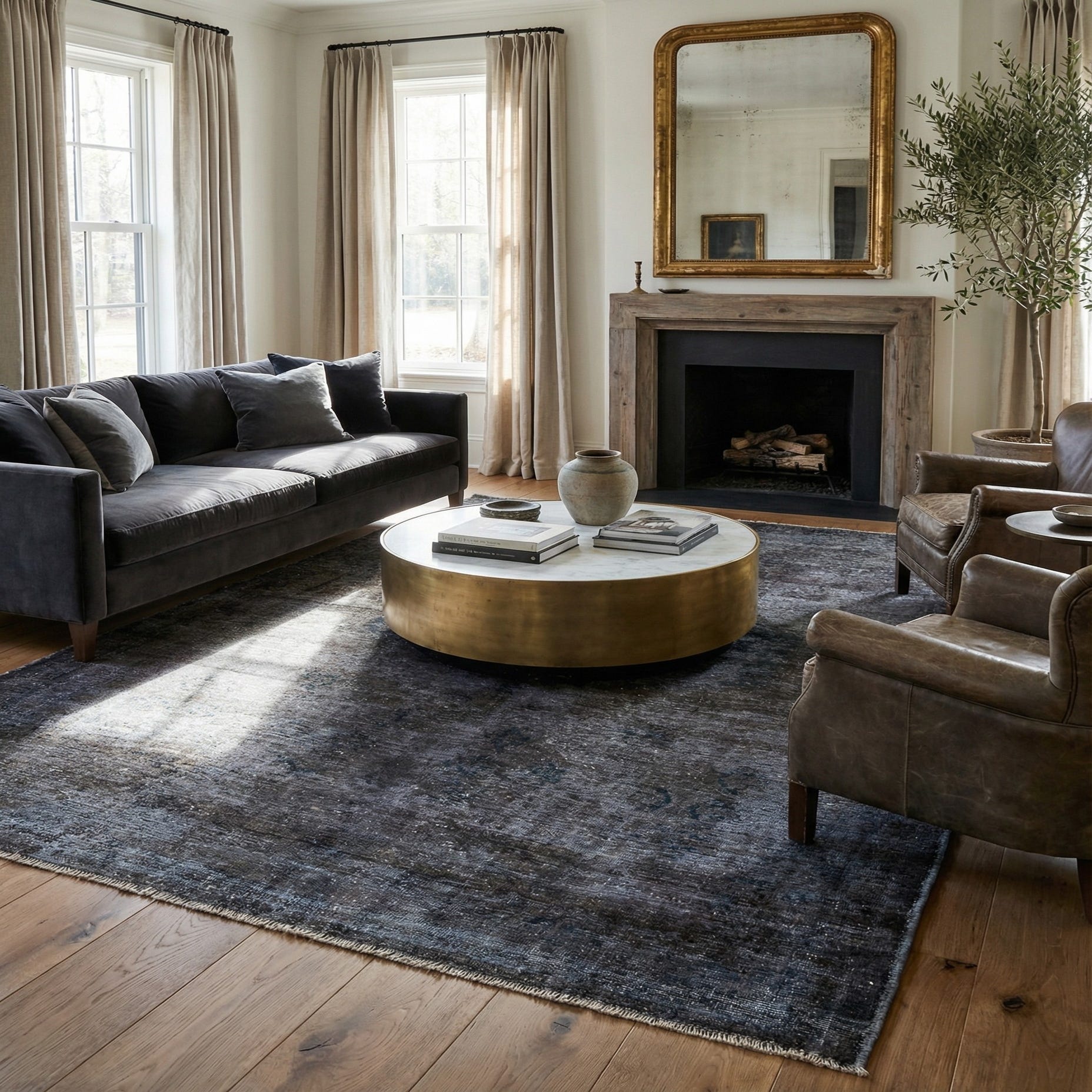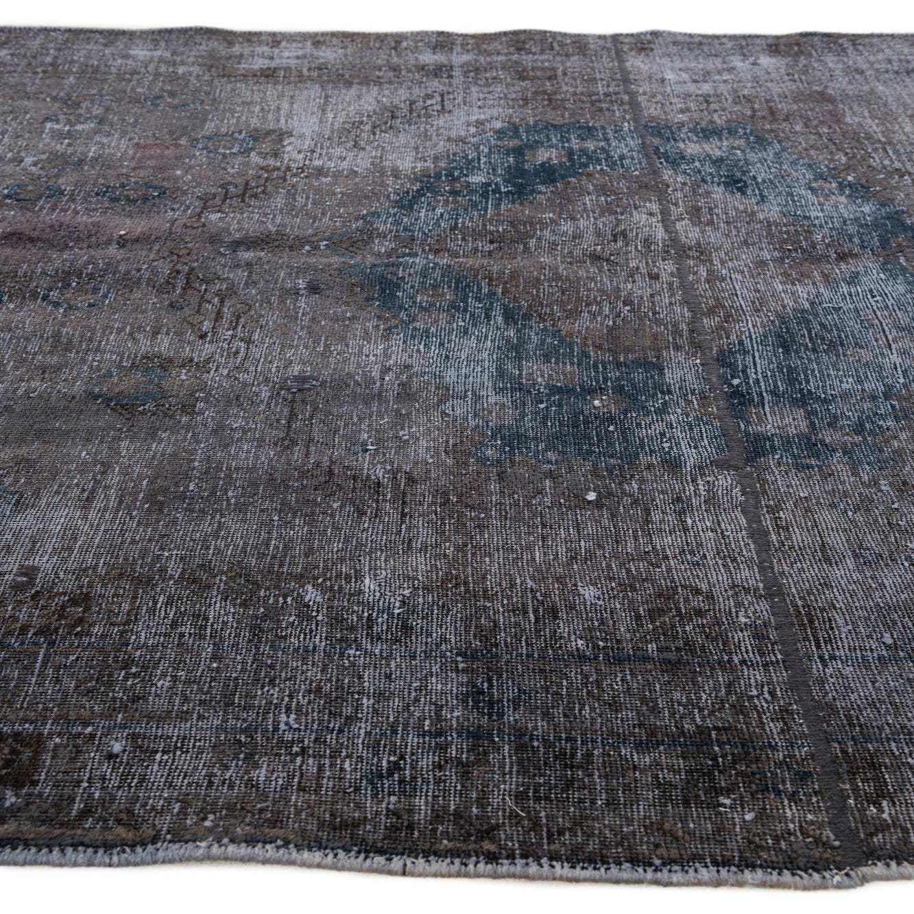 This Persian Ultra Vintage rug is an antique Persian Rug that has been washed, over-dyed, and then shaved down to a low pile. Look at the detail pictures to fully appreciate the uniqueness of this piece.