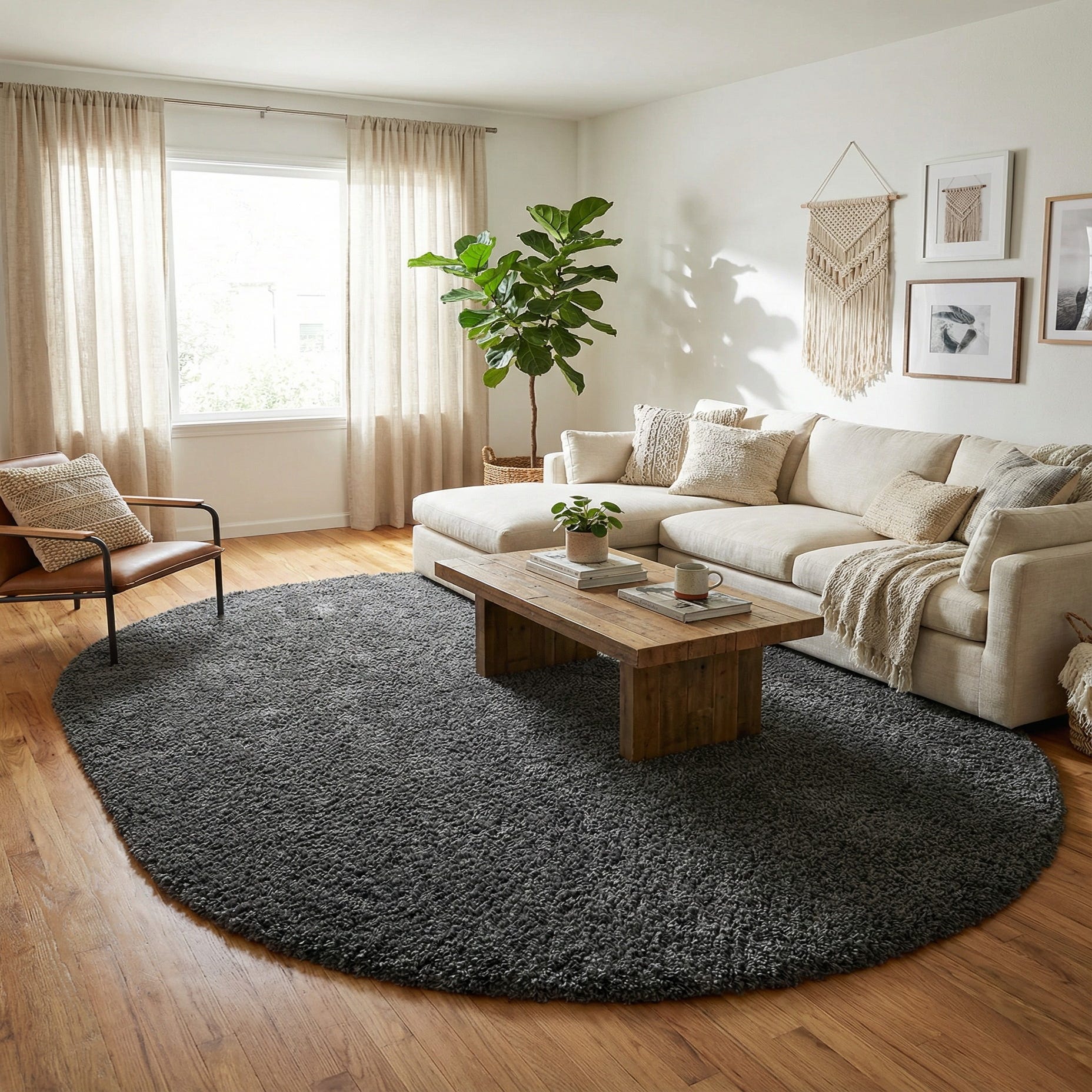 Primary image 7' 10 x 10' Solid Shag Oval Rug