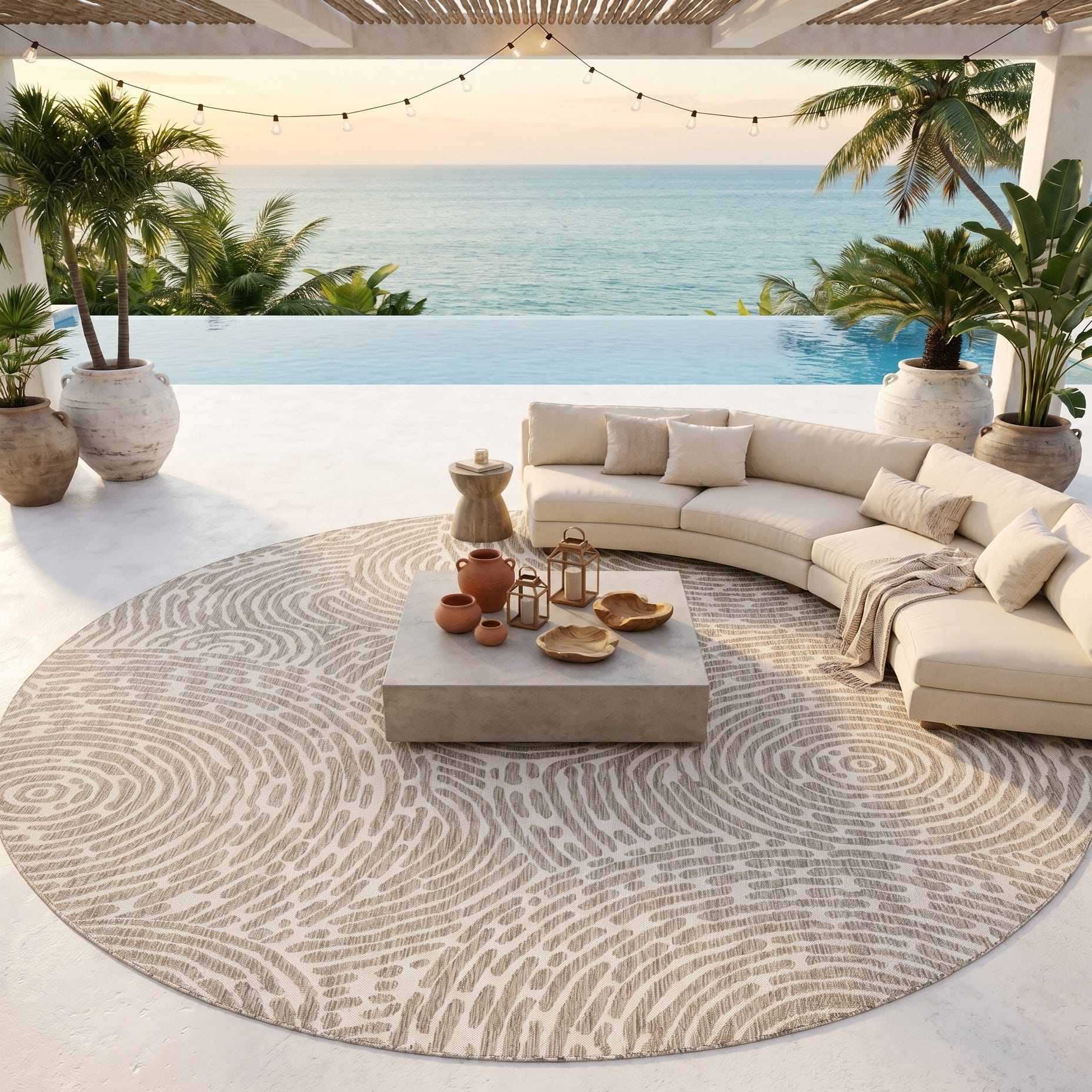 10' x 10' Easy-Clean Modern Indoor / Outdoor Round Rug