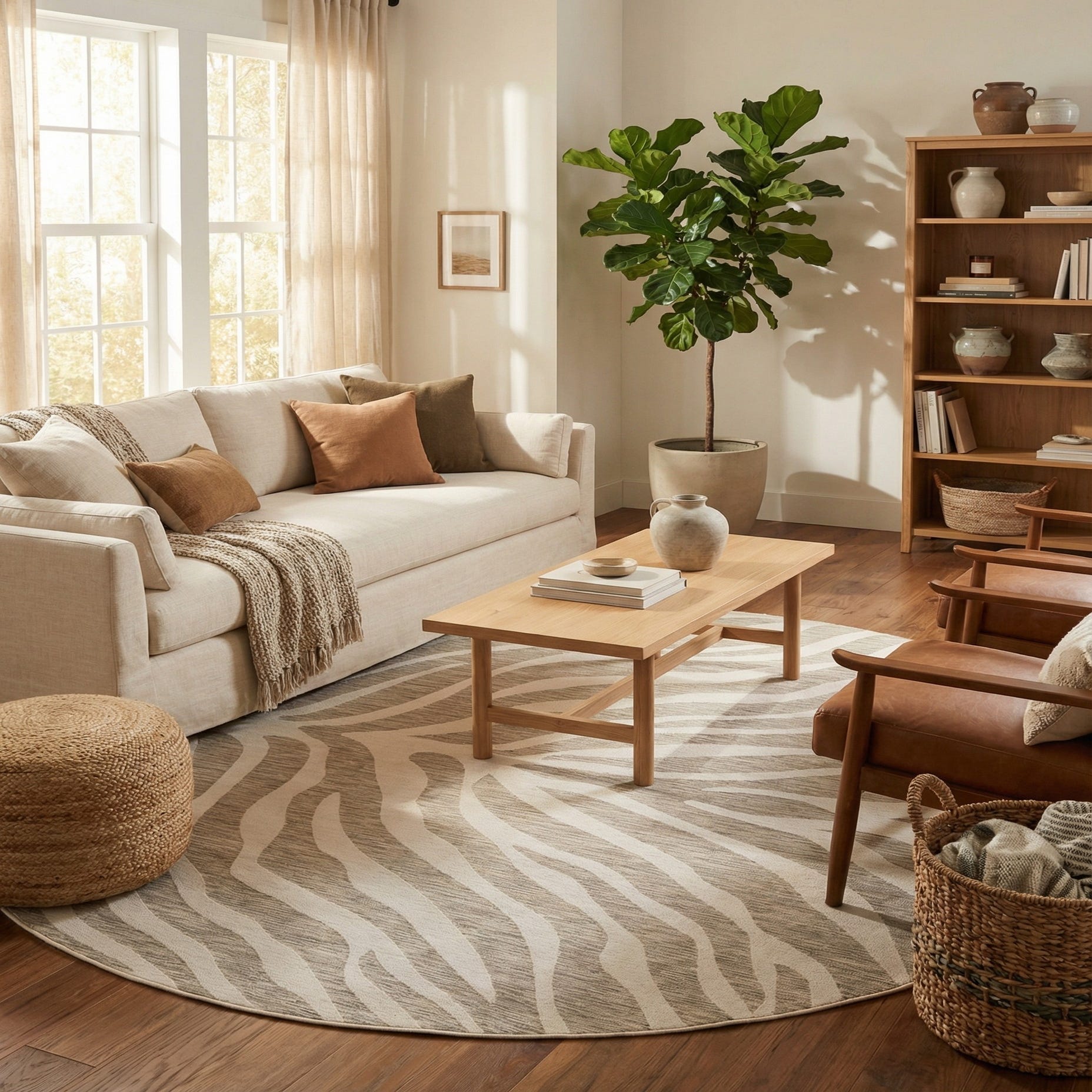 10' x 10' Washable Safari Indoor / Outdoor Round Rug