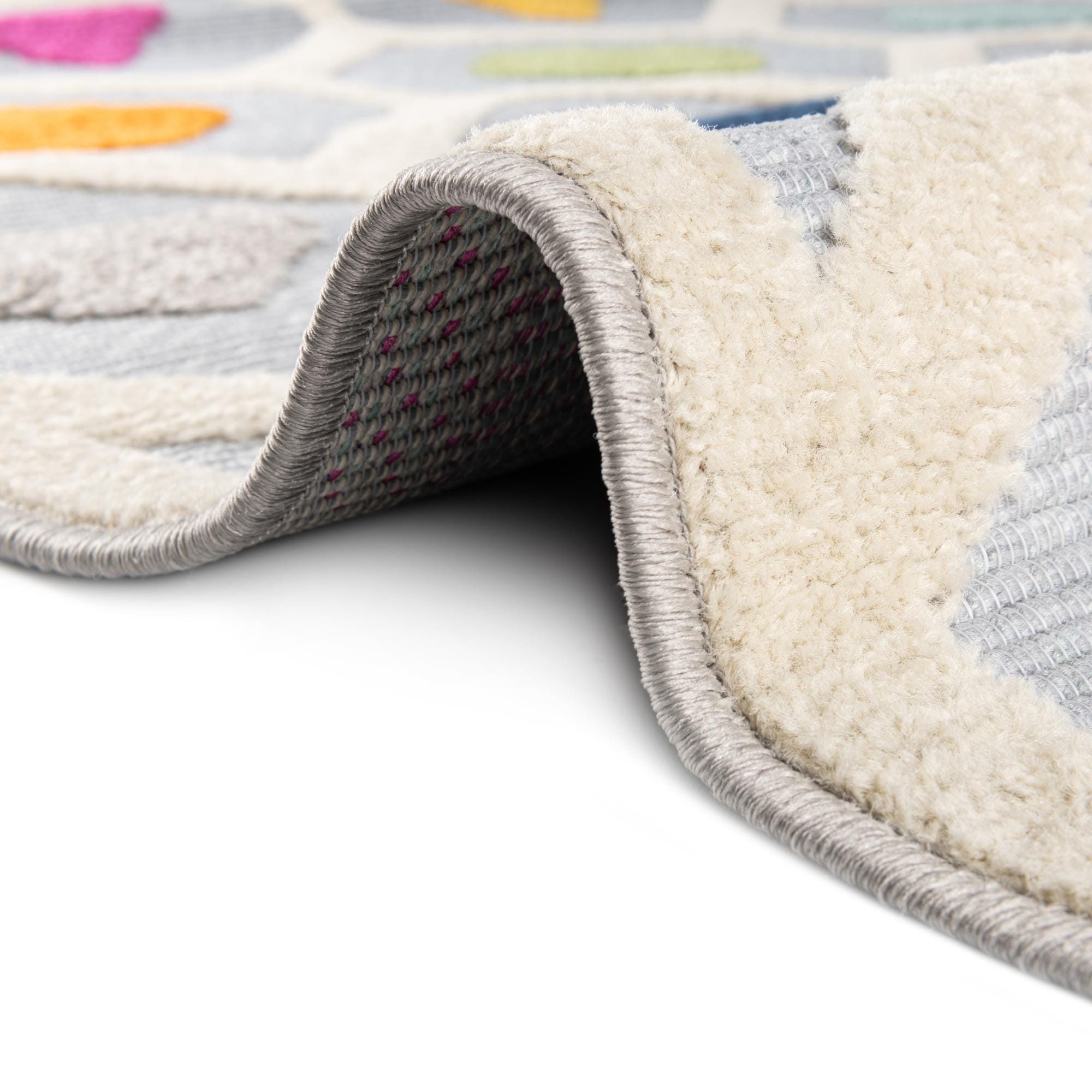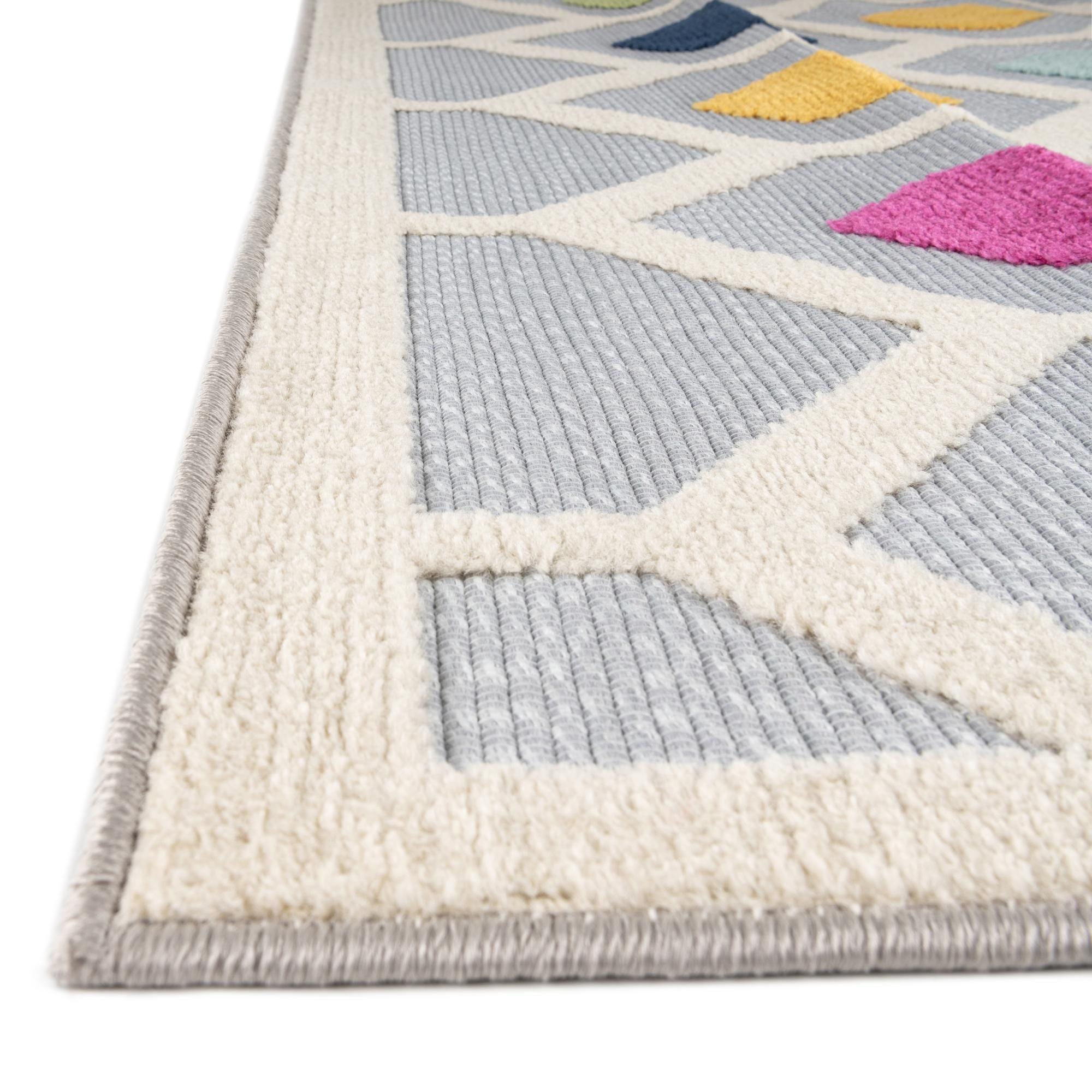 Primary color is Gray. Colors in this rug include: Gray, Gold, Ivory, Light Blue, Light Green, Navy Blue, Pink, Orange.