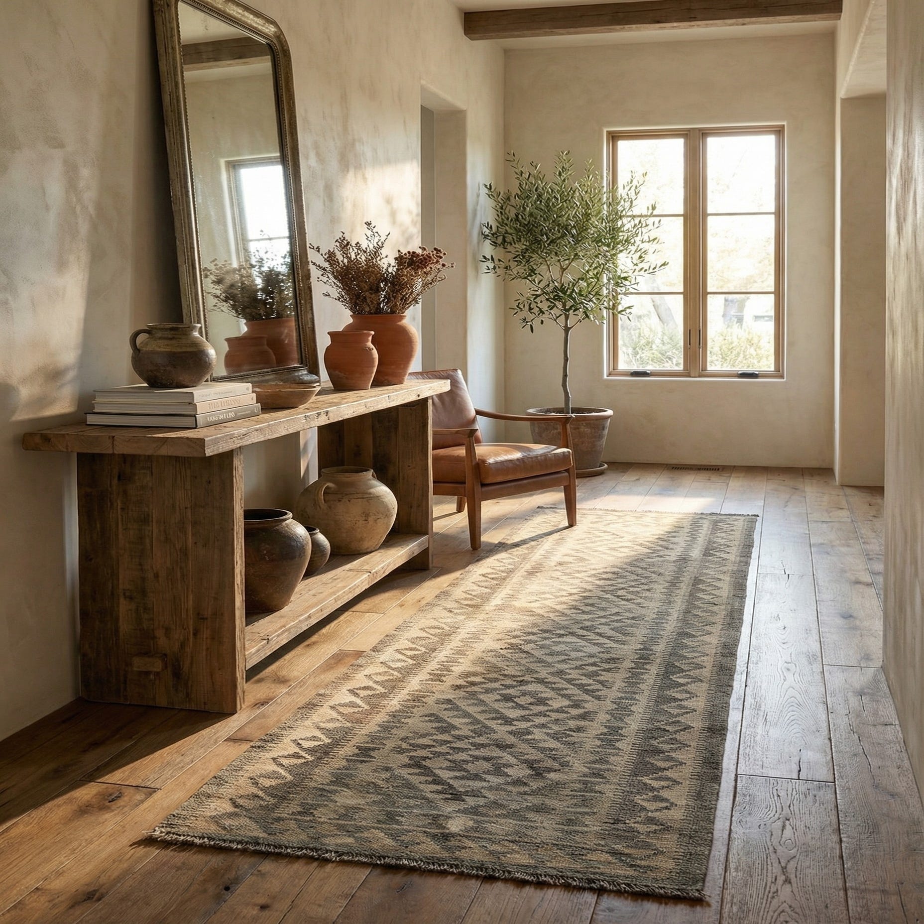 Detail image of 2' 10 x 9' 10  Hand Woven Kilim Maymana Wool Runner Rug